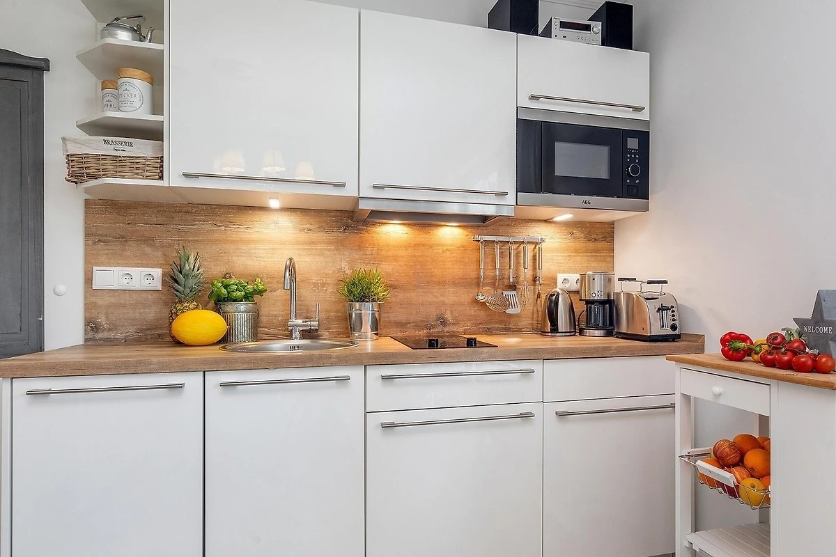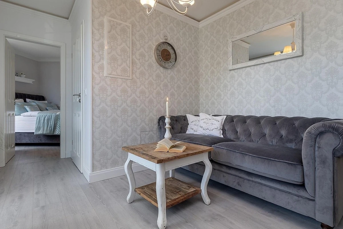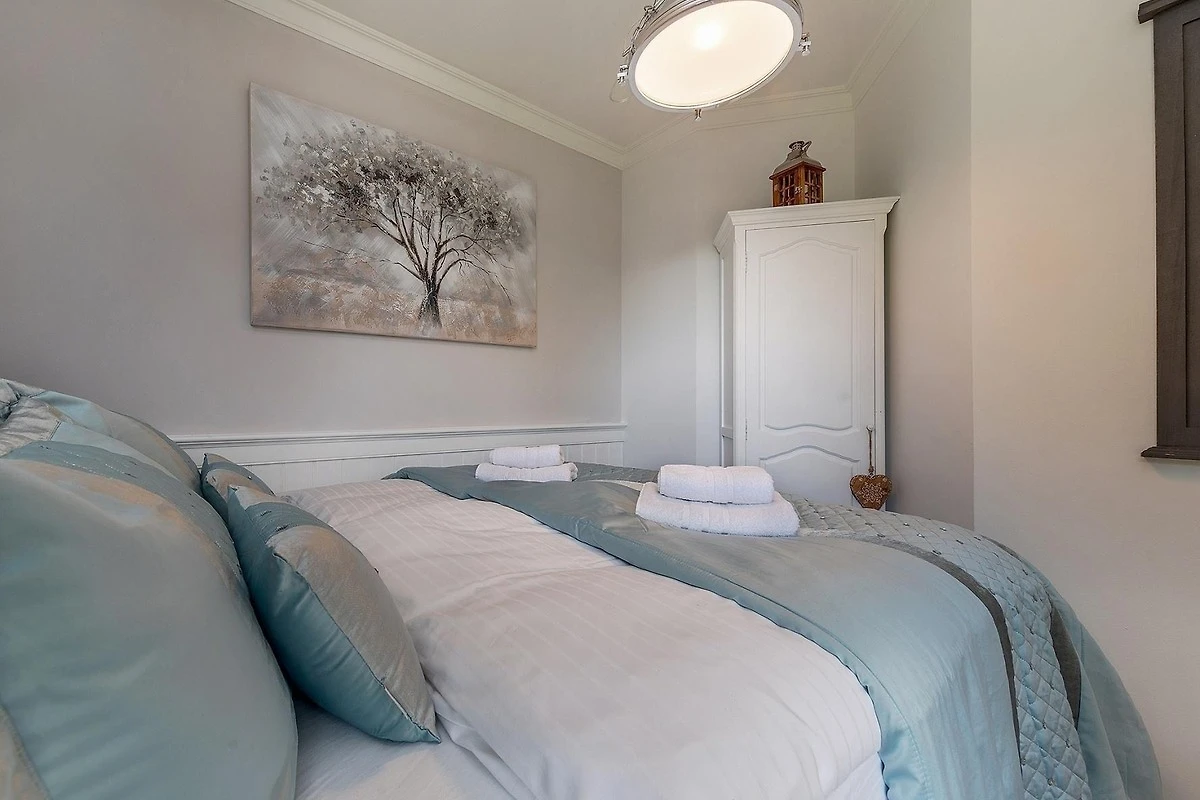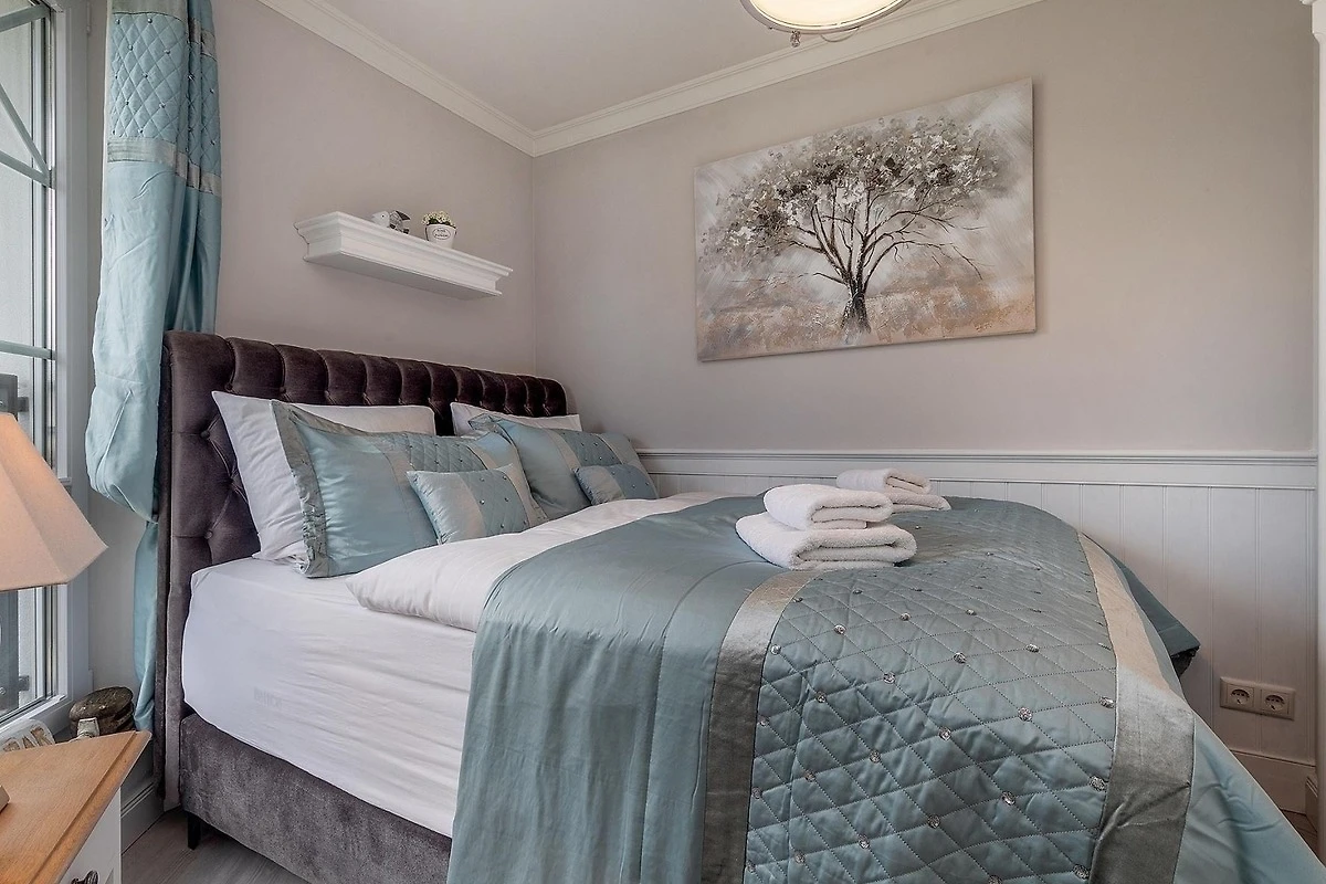 Die Ferienwohnung bietet eine durchdachte Ausstattung für einen erholsamen Aufenthalt. Sie ist barrierefrei und allergikergeeignet, ideal für jede Art von Reisenden. Die offene Küche ist vollständig ausgestattet mit einem Geschirrspüler, Elektro-/Gasherd, Backofen, Kühlschrank und Kaffeemaschine. Der Esstisch lädt zu gemeinsamen Mahlzeiten ein. Das moderne Badezimmer verfügt über eine bodengleiche Dusche mit Fussbodenheizung und ist mit einem Fenster, Haartrockner sowie Kosmetikspiegel ausgestattet. Das gemütliche Schlafzimmer ist mit einem komfortablen Doppelbett (160 x 200 cm) eingerichtet. Der Wohnbereich besticht durch indirekte Beleuchtung und eine HiFi-Anlage für entspannte Abende. Internet mit WLAN, ein Fahrstuhl und eine Gemeinschaftszone runden das Angebot ab. In unmittelbarer Nähe kann man saisonal frische Brötchen vom mobilen Bäcker holen und den Strand in der Morgenstunde geniessen.