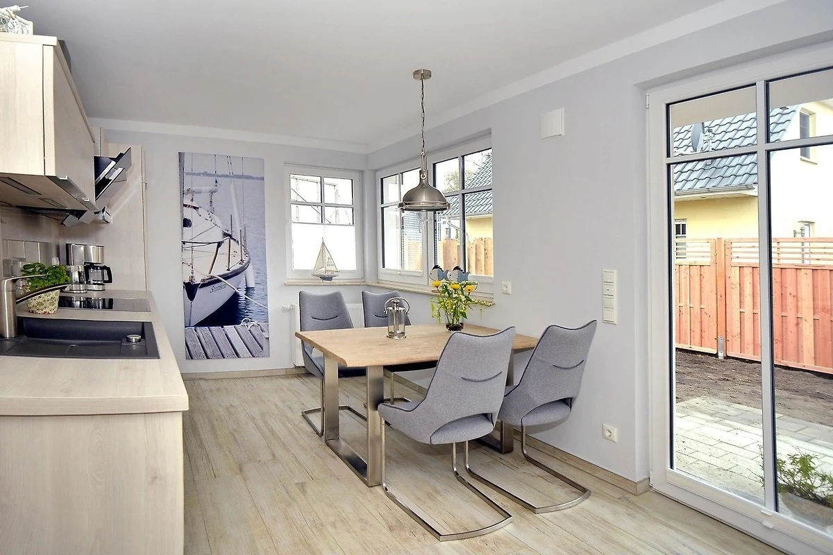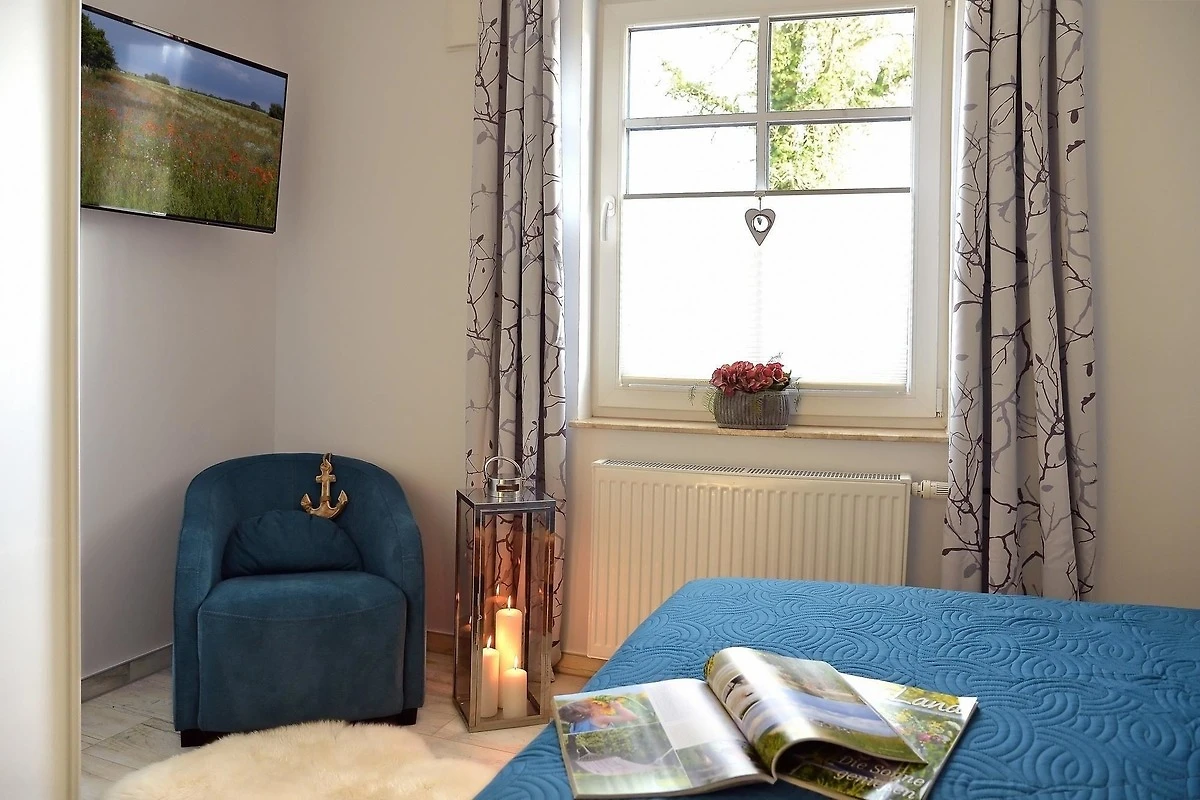 Die Ferienwohnung befindet sich in zentraler Lage, nur eine Minute vom nächsten Bäcker entfernt und lediglich 50 Meter von einem Restaurant. Von hier aus ist es ein angenehmer Abendspaziergang von etwa 400 Metern entlang der Shoppingmeile von Zingst bis zum Hafen, wo sich die Möglichkeit bietet, einen Kaffee zu geniessen. Der lange, weisse Sandstrand ist in wenigen Gehminuten erreichbar. Die Umgebung bietet vielfältige Freizeitmöglichkeiten wie Angeln, Golfen, Reiten, Radfahren, Tauchen sowie Wassersportarten wie Kanufahren, Segeln und Surfen. Kulturinteressierte können in der Nähe zahlreiche Veranstaltungen und Ausstellungen entdecken. Im abgeschlossenen Garten und auf der Terrasse der Ferienwohnung lädt ein ruhiger Rückzugsort zum Entspannen ein. Hier verbinden sich zentrale Lage und erholsame Freizeitgestaltung harmonisch.