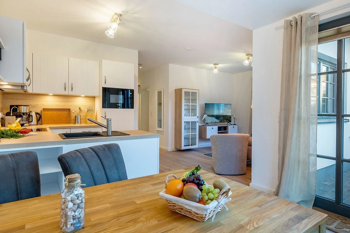 Die Ferienwohnung befindet sich in einer ruhigen und malerischen Lage in Zingst, nur wenige Gehminuten vom Strand entfernt. Der ortstypische Charme wird durch eine Vielzahl von Freizeitmöglichkeiten in der Umgebung ergänzt. Der feinsandige Strand ist etwa einen Kilometer entfernt, ideal für Sonnenanbeter und Wassersportler. In der Nähe befinden sich zahlreiche Rad- und Wanderwege, die zu ausgedehnten Erkundungstouren einladen. Reitmöglichkeiten sind ebenfalls in der Umgebung vorhanden. Geschäfte und Restaurants sind bequem zu Fuss erreichbar, während kulturelle Highlights und Museen im Ortskern entdeckt werden können. Für Sportbegeisterte bietet die Region Windsurfen, Segeln und Angeln. Familien finden in der Nähe Spielplätze und Minigolfanlagen. Die Anreise gestaltet sich bequem über die nahegelegenen Strassenverbindungen, die sowohl mit dem Auto als auch mit öffentlichen Verkehrsmitteln gut erreichbar sind.