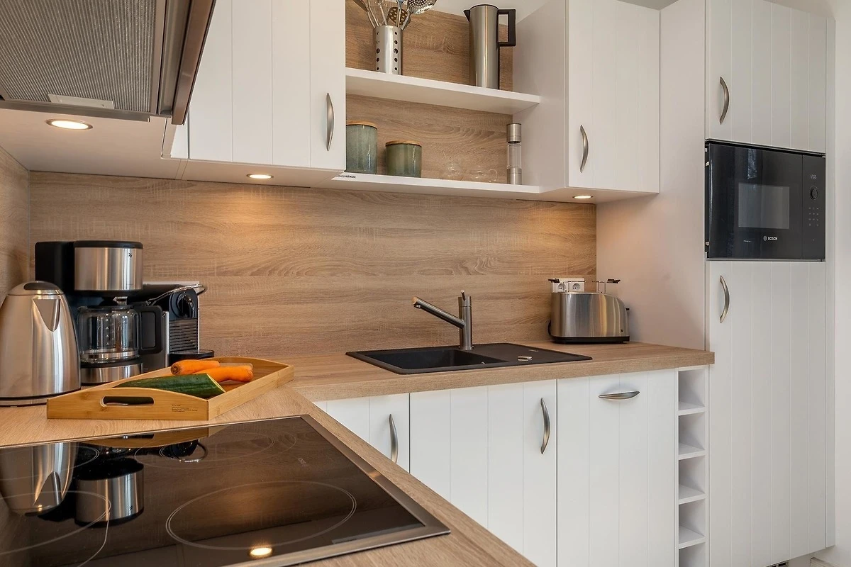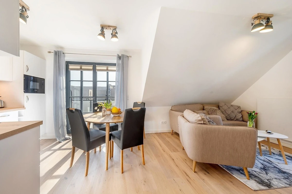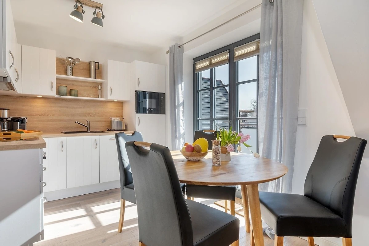 Diese helle und einladende Ferienwohnung bietet eine ideale Oase für erholsame Tage. Sie verfügt über zwei Schlafzimmer, eines mit einem komfortablen Doppelbett und eines mit zwei Einzelbetten, sowie ein modernes Badezimmer mit Duschbad. Der offene Küchenbereich ist optimal ausgestattet mit Geschirrspüler, Elektro-/Gasherd, Backofen, Mikrowelle und Kühlschrank, zusammen mit einer Kaffeemaschine, einem Wasserkocher und einem Toaster, um kulinarische Köstlichkeiten zu zaubern. Der Esstisch lädt zu gemeinsamen Mahlzeiten ein. Der gemütliche Wohnbereich mit Sofa, Kamin/Kachelofen und HiFi-Anlage sorgt für entspannende Stunden. Zur Ausstattung gehören zudem Internet mit WLAN, eine Waschmaschine, ein Haartrockner und viele Annehmlichkeiten, die den Aufenthalt angenehm gestalten. Ein Parkplatz steht bereit, und die Wohnung ist allergikergeeignet. Brettspiele und ein Sonnenschirm ergänzen das Freizeitangebot, während Rauchmelder und Feuerlöscher für Sicherheit sorgen.