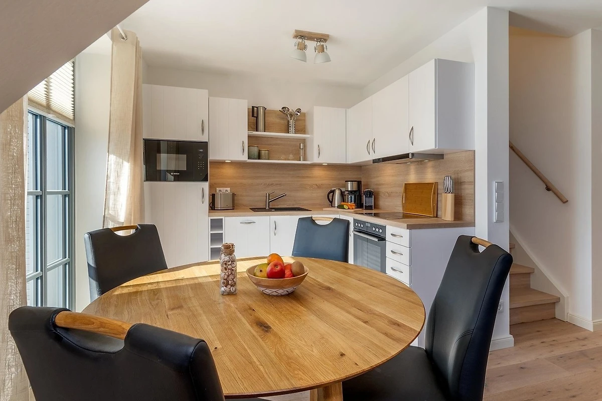 Die Ferienwohnung bietet eine moderne und allergikerfreundliche Ausstattung, die ideal für Familien und Erholungssuchende ist. Sie besteht aus zwei Schlafzimmern, einem mit einem Doppelbett und dem anderen mit zwei Einzelbetten. Die offene Küche ist komplett ausgestattet mit einem Elektro-/Gasherd, Geschirrspüler, Kühlschrank, Mikrowelle, Backofen und weiterer Küchentechnologie wie Kaffeemaschine und Toaster. Der grosszügige Esstisch lädt zu gemeinsamen Mahlzeiten ein, während das gemütliche Sofa im Wohnzimmer mit Kamin/Kachelofen für Entspannung sorgt. Ein Duschbad mit Haartrockner und eine Waschmaschine runden das Angebot ab. WLAN steht ebenfalls zur Verfügung. Für die Sicherheit sind Rauchmelder und ein Feuerlöscher installiert. Ein Parkplatz ist vorhanden, und zudem warten Brettspiele sowie ein Sonnenschirm auf die Gäste. Die Wohnung bietet nicht nur Komfort, sondern auch eine perfekte Grundlage für erholsame Urlaubstage.