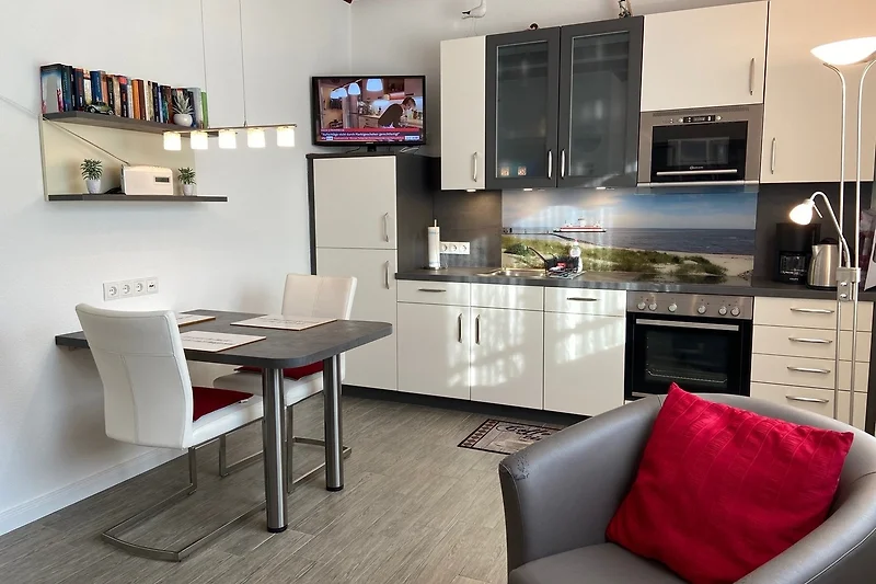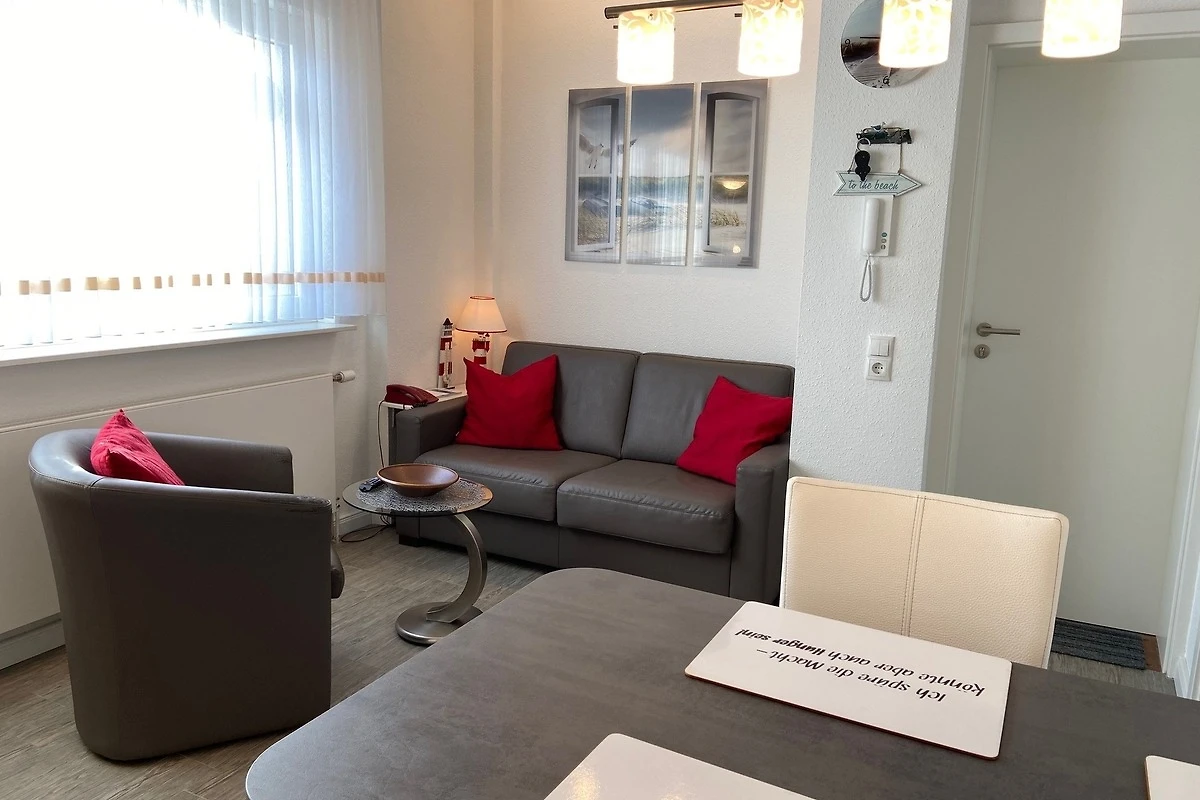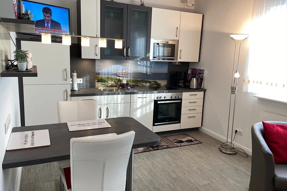 Die Wohnung war voll ausgestattet und es fehlte gar nichts. Die Lage zum Strand war und die Nähe zum Bäcker, Fleischer, Edeka, Imbißbude, Pizzeria, Restaurants usw. waren einmalig! Alles fußläufig erreichbar. Den Strandkorb in der 1.Reihe am Strand konnten wir aufgrund des Wetters leider nur 2 mal nutzen. Eine kleine Terrasse mit Strandkorb war vorhanden. Die Sonne schien bis ca. 11Uhr auf die Terrasse. Ein Fön fehlte - ein Anruf bei der AgenturMein Föhr Urlaub und schon wurde ein neuer Fön umgehend gebracht. Wir kommen bestimmt wieder!