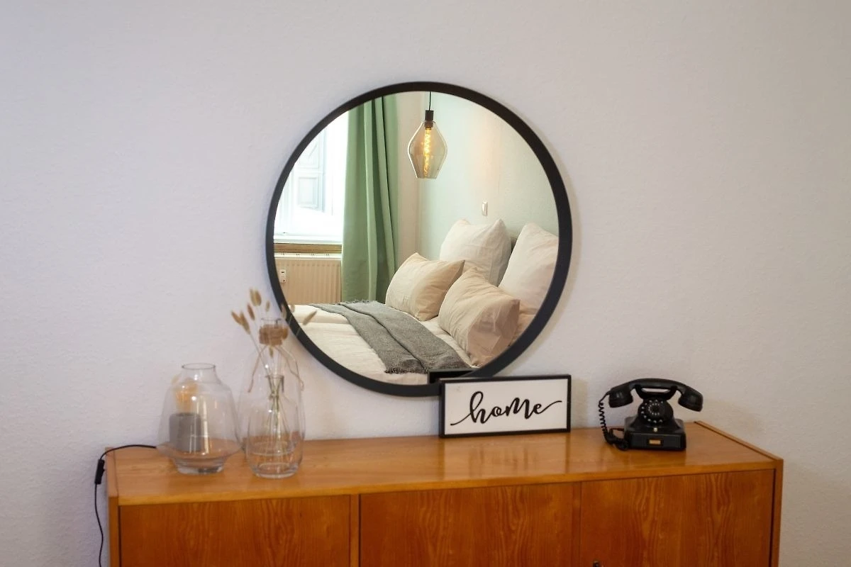 Die Ferienwohnung befindet sich im Erdgeschoss und bietet auf ca. 38m² historischen Altbaucharakter, mit modernem Flair. Sie öffnen die Tür und befinden sich im gemütlich und modern eingerichtetem Wohn-/Essbereich. Hier erwartet Sie eine kleine, aber moderne Küchenzeile, mit allen Geräten die sie für ein gemütliches Frühstück benötigen: Mikrowelle, 2er Induktionskochfeld, Kaffeemaschine, Toaster und Wasserkocher, sowie Kühlschrank und natürlich ausreichend Geschirr und Kochutensilien. Das lecker zubereitete Frühstück können Sie dann am Esstresen, der für 2 Personen ausreichend Platz bietet einnehmen. Dann kann es aufgehen um die Stadt zu erkunden. Oder Sie entspannen noch auf der gemütlichen Eck-Couch im Wohn-/Essbereich. Ebenso finden sie hier einen LED-Flachbildfernseher mit Satelliten-Empfang.