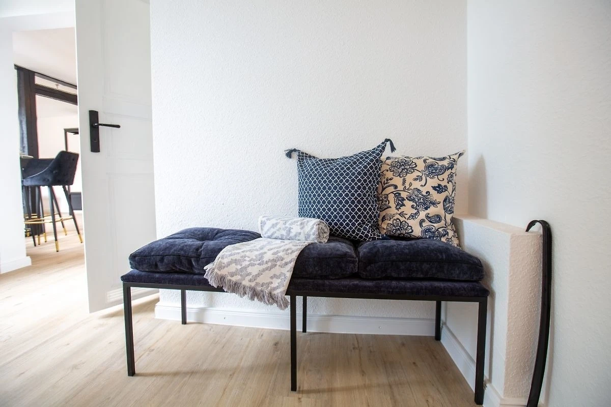 Über den historisch erhaltenen Hausflur gelangen Sie über eine sanierte Holztreppe ins 2. Obergeschoss, hier befindet sich das ca. 47m² grosse helle Apartment.