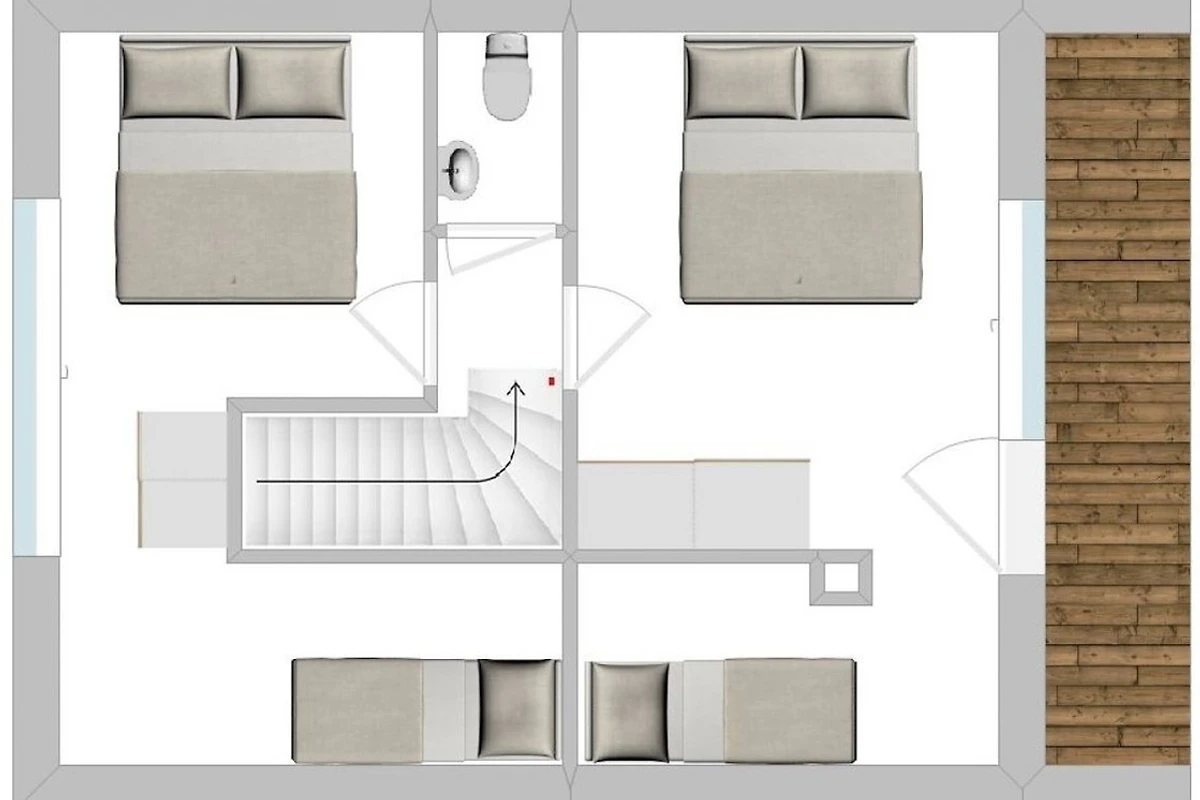 Nach einem Tag an der frischen Luft können Sie sich mit einer Unterwassermassage im Whirlpool oder mit einem Saunagang verwöhnen. Vom Wohnzimmer haben Sie Zugang zu der Terrasse mit Blick auf den Strand. Hier können Sie beim Sonnenbaden die Aussicht geniessen oder einen gemütlichen Grillabend mit Freunden und Familie verbringen. Die Schlafzimmer bieten mit drei grosszügigen, 1,80m breiten Boxspring-Doppelbetten hervorragenden Schlafkomfort. Die beiden grossen Schlafzimmer unter dem Dach bieten in zwei abgetrennten und gemütlichen Schlafnischen noch jeweils ein Einzelbett und sind damit ideal für Eltern mit kleineren Kindern.
