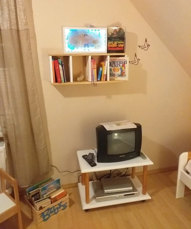 Im Kinderzimmer gibt´s natürlich Spiele, Bücher und Hörspiele, kleine Musikanlage, TV und DVD und einige Filme für die Größeren und Kinderfilme.