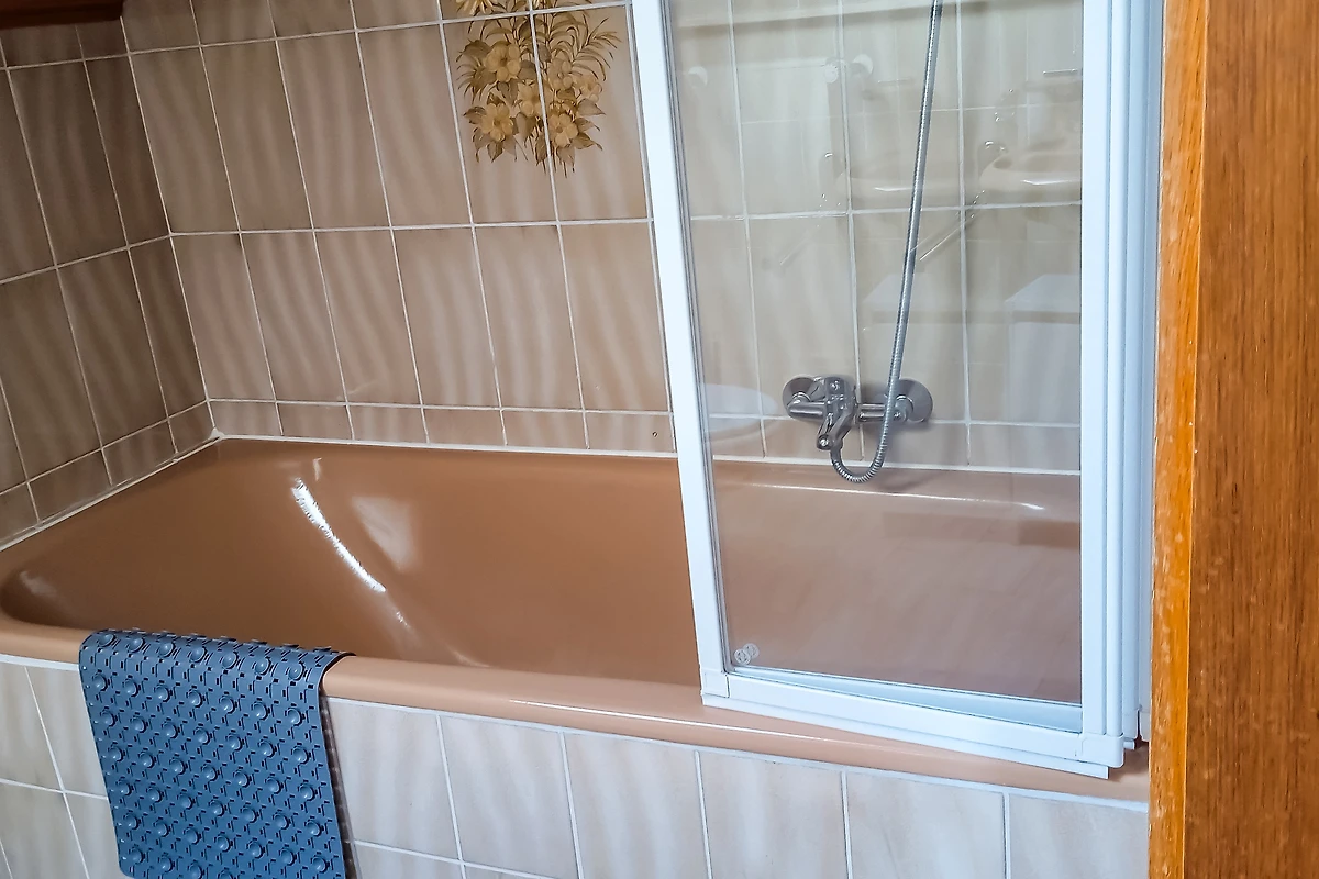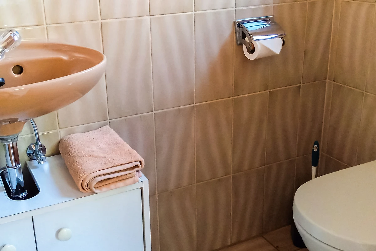 Es gibt 2 WCs im Haus - eines im Erdgeschoss und eines im 1. Stock. Eine Dusche / Bad steht den Gästen im 1. Stock zur Verfügung.