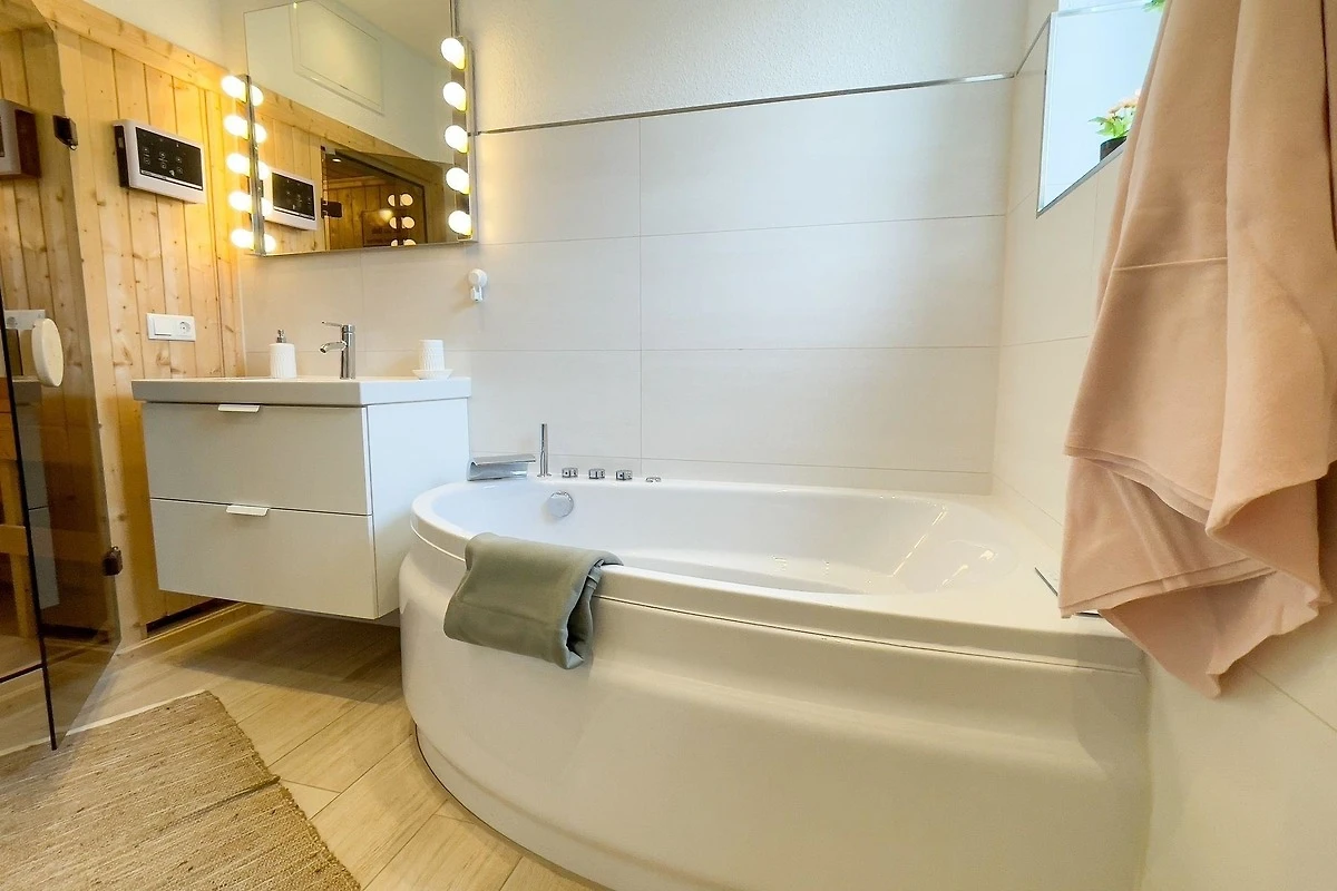 Die Ferienwohnung bietet entspannte Erholung mit einem eigenen Whirlpool und einer Sauna. Bestehend als freistehende Unterkunft, geniessen Gäste ungestörte Privatsphäre. Der herrliche Gartenblick schafft eine einladende Atmosphäre, ideal für ruhige Momente. Diese Kombination aus Wellness und Privatsphäre macht die Ferienwohnung zu einem beliebten Rückzugsort für Erholungssuchende.