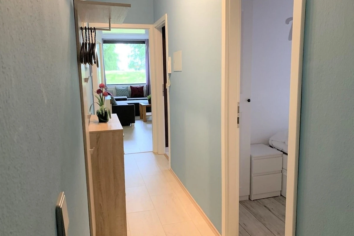 Die Wohnung verfügt über 2 Zimmer, Küche und Badezimmer. Das Wohnzimmer ist mit einer Sofaecke mit Schlaffunktion und einem Essbereich ausgestattet, mit direktem Zugang zum Balkon mit Teilmeerblick. Des Weiteren verfügt die Wohnung über ein Schlafzimmer mit einem Doppelbett (Renovierung im Frühjahr 2021). Die geräumige Küche bietet alles, was Sie für Ihren Urlaub benötigen: Ceran - Kochfeld, Backofen, Kühlschrank mit Gefrierfach, Geschirrspüler, Kaffeemaschine, Wasserkocher, Toaster - und vieles mehr. Das helle Tageslichtduschbad verfügt über eine Dusche, Waschtisch, WC und Föhn. Alle Räume verfügen über Aussenrollos.