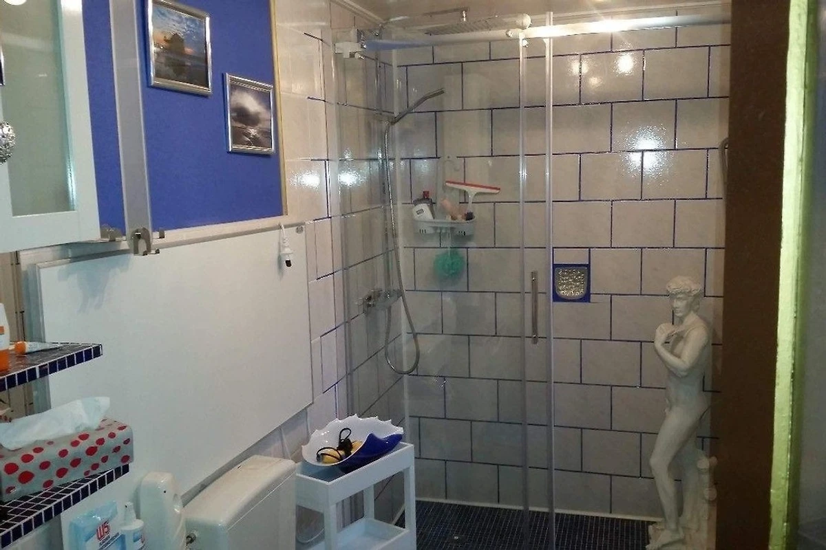 Der Hauptraum ist komplett mit Sofaecke und Koch-Essbereich sehr wertig eingerichtet. Der Schlafbereich ist mit einem stabilen Holzdoppelbett, getrennten Lattenrost und hochwertigen Matratzen mit medizinischen Schutzüberzügen eingerichtet. Das L-förmige Sofa bietet genügend Platz zum herumlümmeln. Der Koch- und Essbereich ist mit allen notwendigen Dingen ausgestattet. Ein Zweiplattenherd, kleiner Backofen, Kaffeemaschine, Toaster und Mikrowelle etc. ist ebenfalls vorhanden; selbstverständlich auch Geschirrtücher und vieles mehr.
