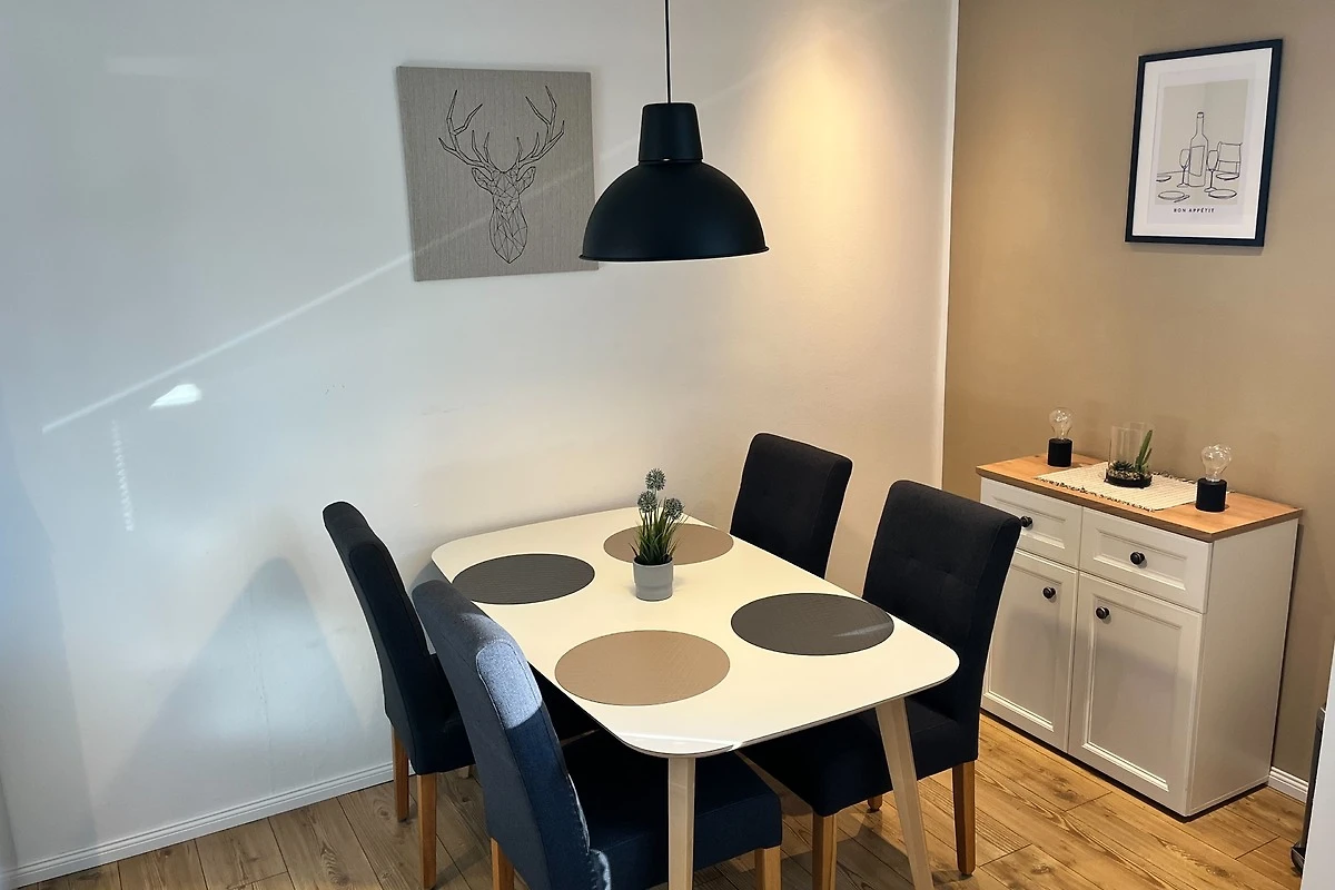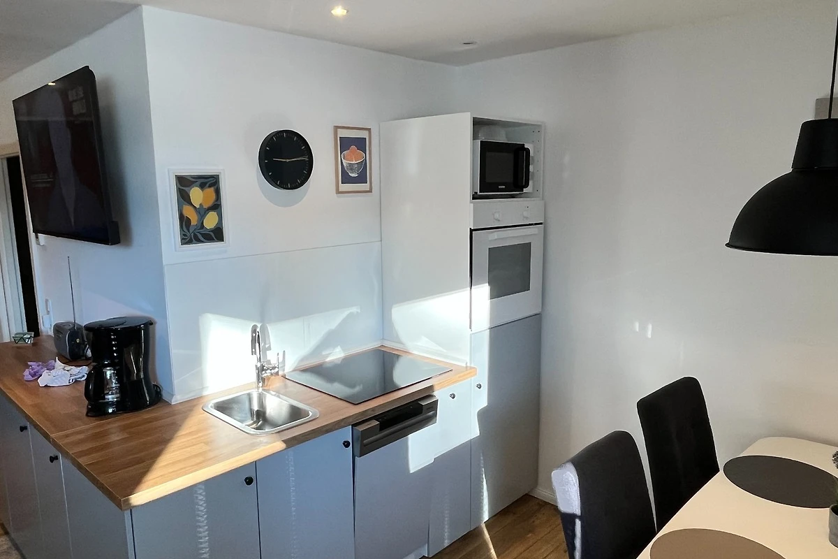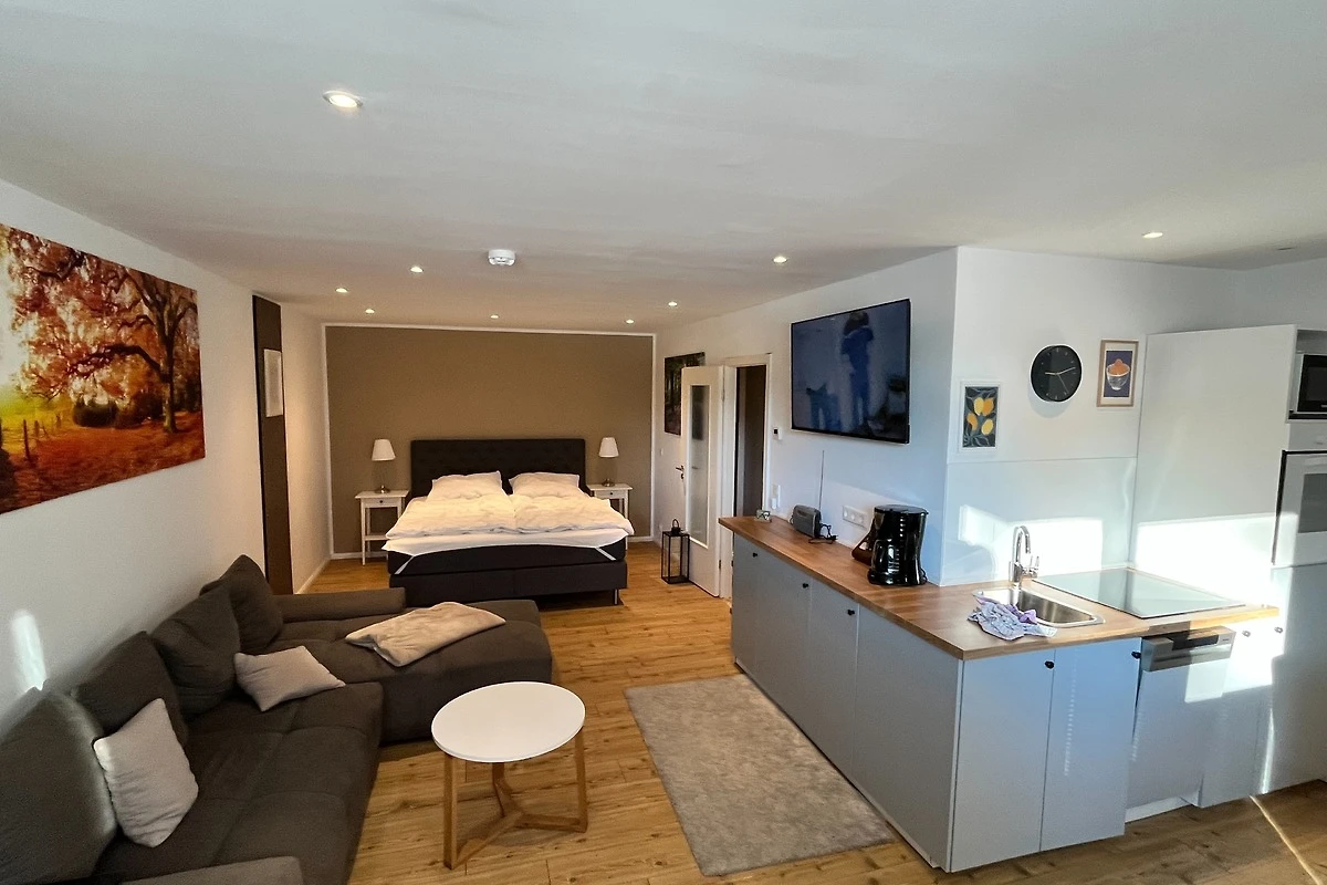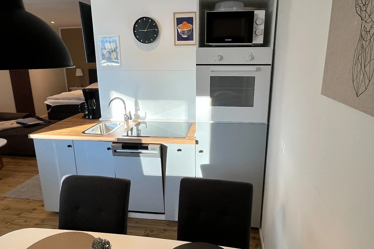 Das Apartment wurde im Mai 2021 komplett neu renoviert und verfügt über 1 Schlafzimmer (grosses Bett 1,8m x2 m), eine Schlafcouch, 1 Badezimmer, einen Flachbild-TV, einen Essbereich, eine voll ausgestattete Küche und einer Terrasse mit Gartenblick.