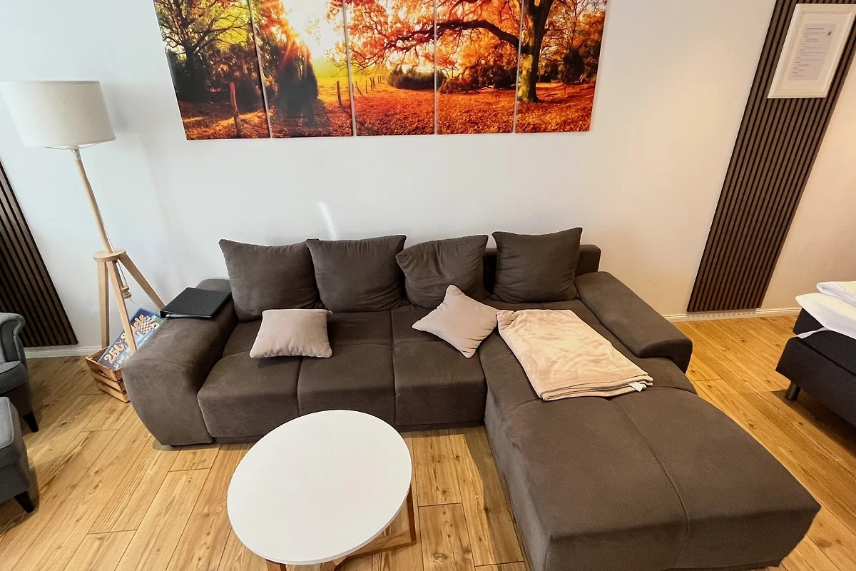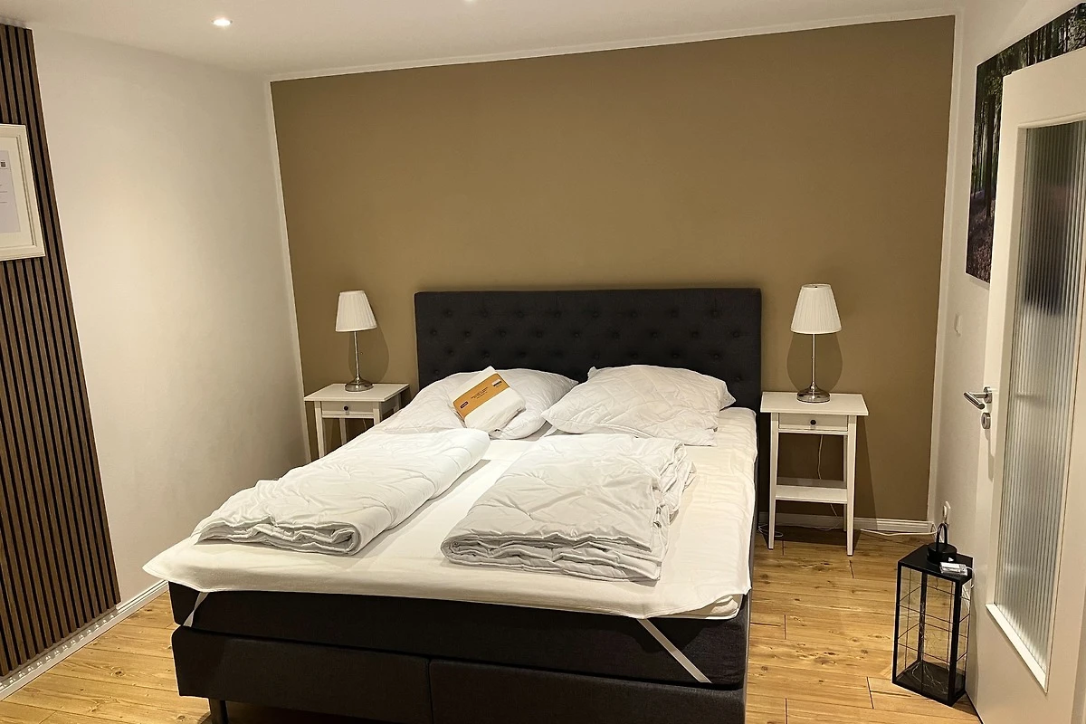 Die Wohnung wurde mit einem neuen Boxspringbett ausgestattet.