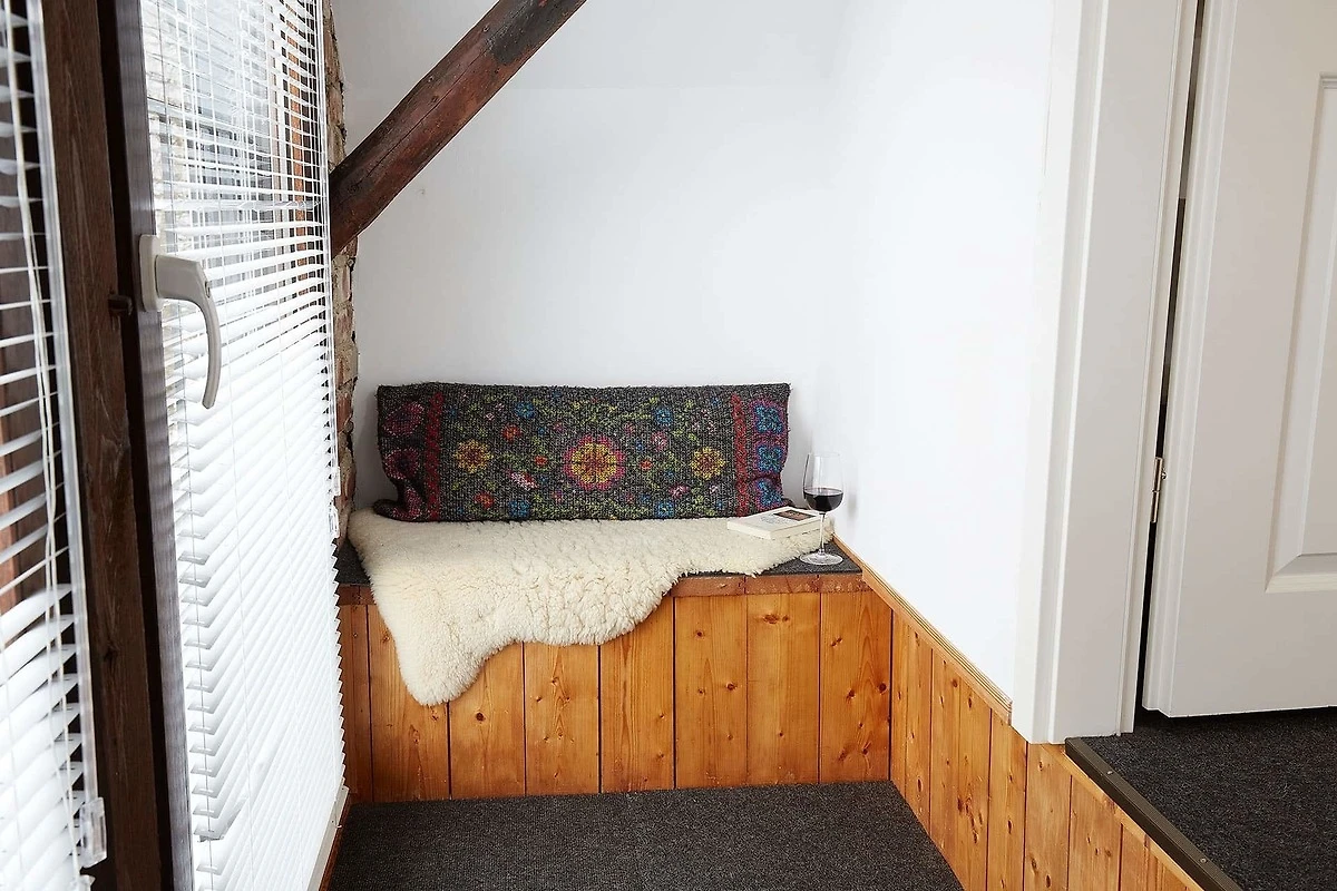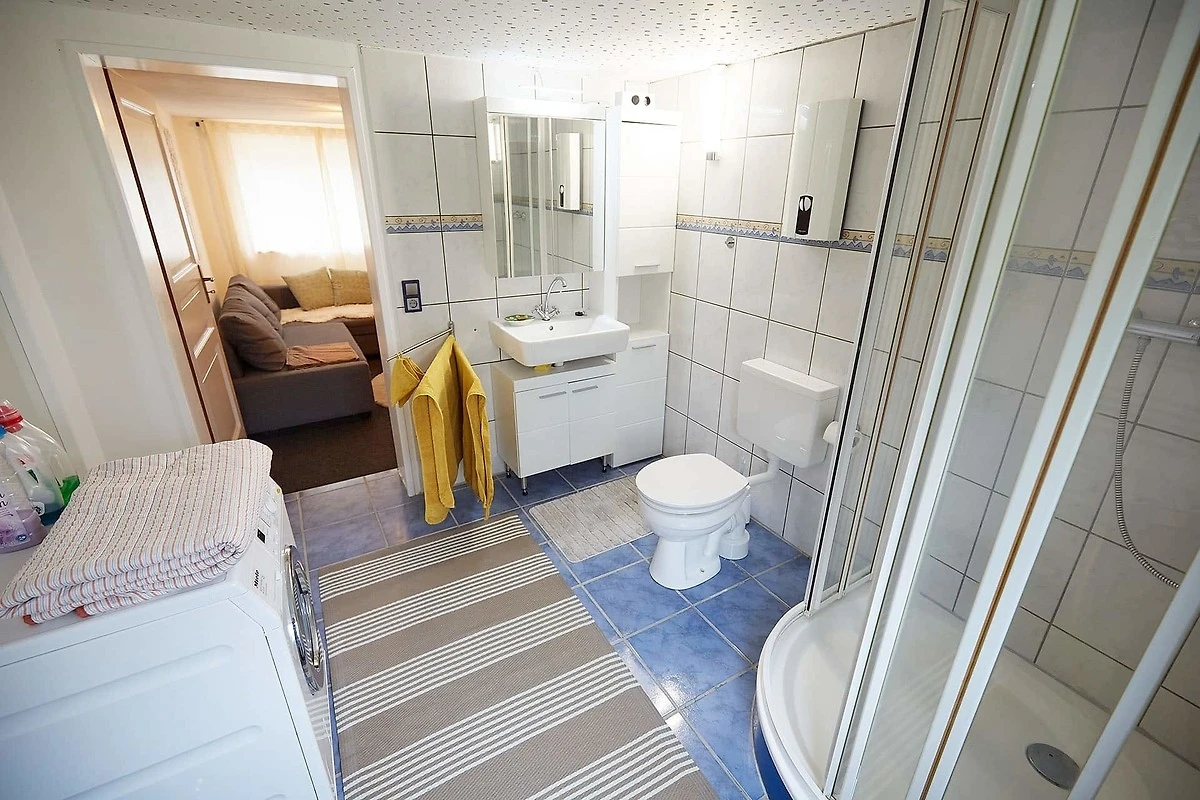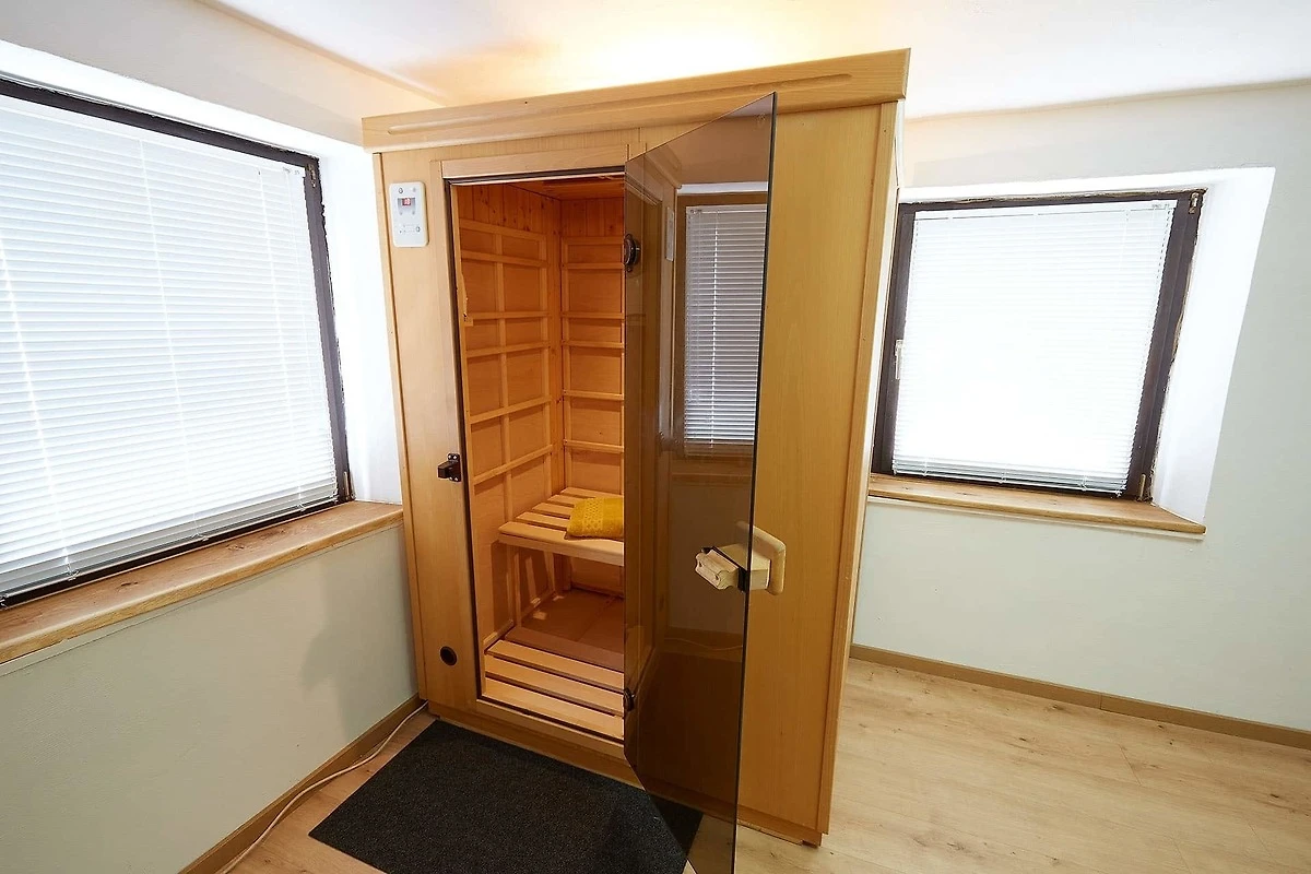 Die 40 qm verteilen sich auf einen gemütlichen Eingangsbereich, einem Wohnzimmer (mit Schlafcouch 160x200) und stimmungsvollem Kaminofen. Einem grosszügigen Badezimmer mit Dusche und einem extra Saunabereich Entspannung und Erholung garantiert.