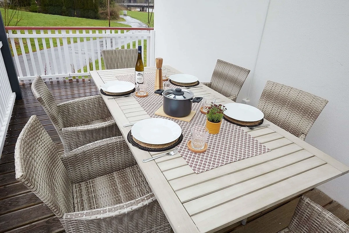 Das Feriendomizil steht in idyllischer Lage in unmittelbarer Nähe der Siegauen und ist umgeben von viel Grün. Geniessen Sie Ihre Auszeit auf der herrlichen, überdachten Sonnenterrasse, beim Saunieren im separaten Saunabereich, oder den Sonnenuntergang über der Auenlandschaft bei einem Glas Wein auf dem kleinen Balkon. Im lichtdurchfluteten Dachgeschoss finden Sie eine kuschelige Leseecke direkt unter dem bodentiefen Giebelfenster. Am heimeligen Kaminfeuer können sie im gemütlichen Wohnzimmer den Tag ausklingen lassen. Beide Wohnzimmer verfügen ausserdem jeweils über ein Flat-TV.