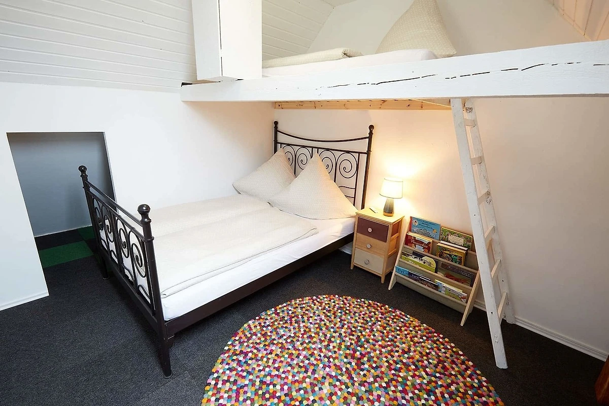 Unser beliebtes Ferienhaus ist aufgeteilt in drei Etagen, eine mit Doppelschlafzimmer, dem Dachgeschoss mit Doppelschlafzimmer und Schlafempore, sowie 2 Wohnschlafzimmern mit jeweils einer Schlafcouch. Bei uns finden Familien und Gruppen mit bis zu 6 Personen ein erholsames Urlaubsdomizil. Ideal für Familien mit Kindern und eventuell mitreisende Grosseltern oder befreundete Familien - aber gleichermassen für Pärchen und kleine Grüppchen.