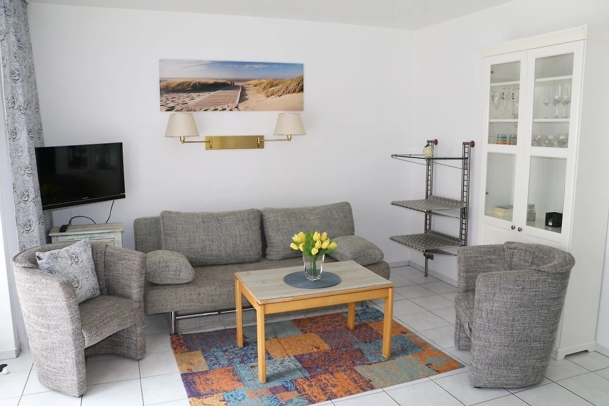 Dieses strandnahe, helle und freundliche 2 Zimmer Appartement befindet sich im EG der Appartementanlage „Haus Henning“ mit insgesamt nur vier Einheiten, welches in zentraler, ruhiger Lage ohne Durchgangsverkehr liegt. An die südlich ausgerichtete Terrasse (teilüberdacht) grenzt eine Rasenfläche.