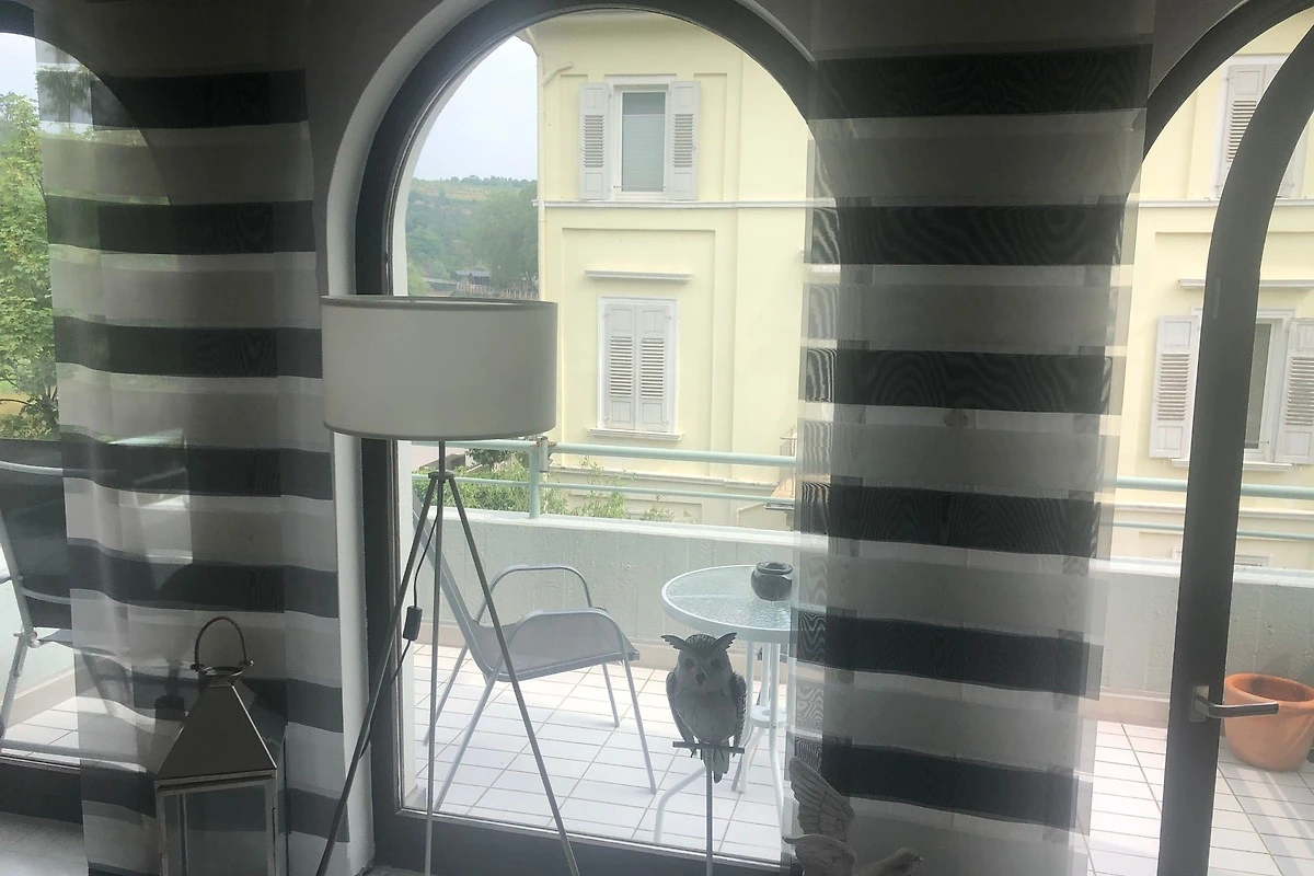 Die Wohnung befindet sich ruhig gelegen in einer Apartmentanlage im Kurviertel direkt am Kurpark. Fussläufig erreichen Sie in unmittelbarer Nähe den Kurpark, den Radonstollen, und die Therme. Ebenfalls ist das Stadtzentrum von Bad Kreuznach in wenigen Gehminuten zu erreichen.