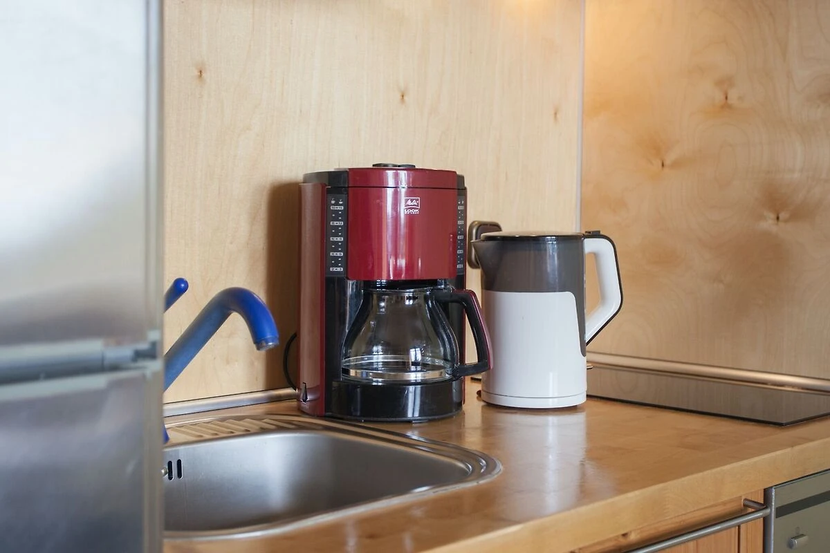In der 2. Etage: (Küche(Wasserkocher, Kochherd, Kaffeemaschine(Filter), Mikrowelle, Spülmaschine, Kühlschrank(+ Gefrierfach)), Wohn/Esszimmer(Doppelschlafcouch, TV(Flatscreen, Niederländische TV-Kanäle), Esstisch), Schlafzimmer(Doppelbett), Badezimmer(Badewanne mit Dusche, Waschbecken, Toilette), Flur)