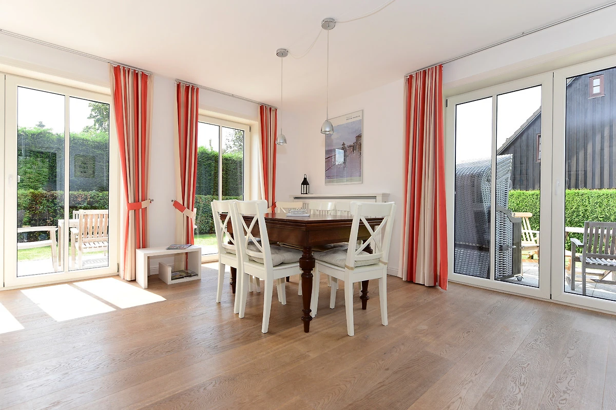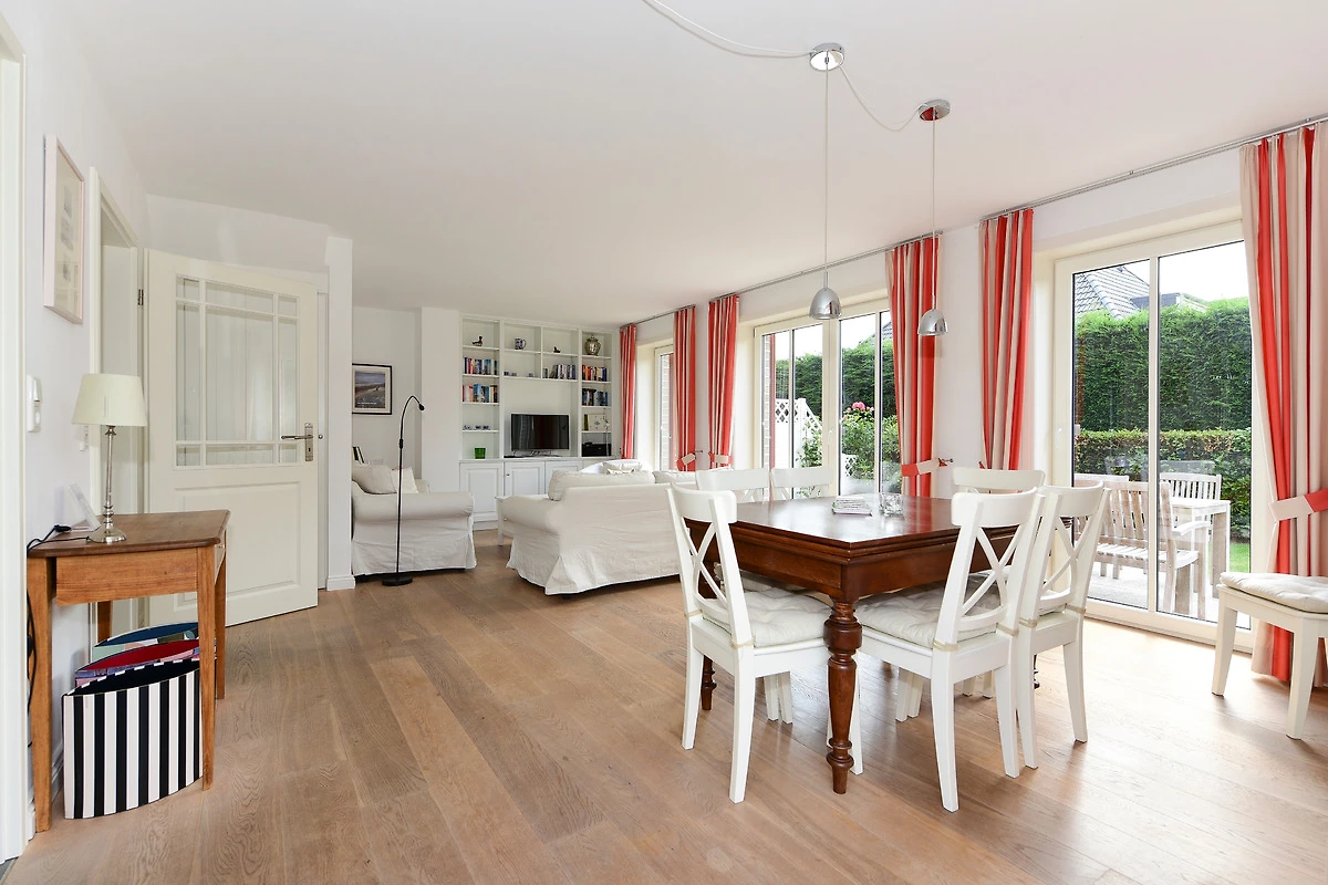 Im Erdgeschoss erwartet Sie ein lichtdurchfluteter Wohnbereich, der direkt in den Garten und auf die beiden Terrassen führt.