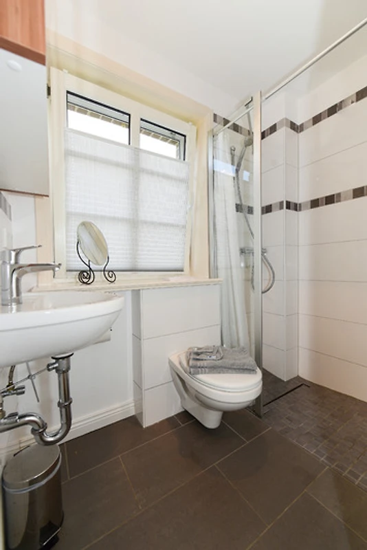 Das grössere Bad bietet Ihnen ausreichend Platz für entspannte Momente und sorgt dafür, dass Sie sich auch hier wie zu Hause fühlen.