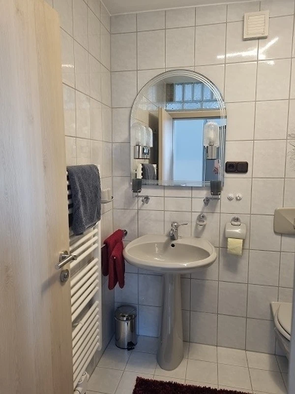 Bad und 1 Schlafzimmer. Wenn nötig ist auch ein Beistellbett vorhanden.