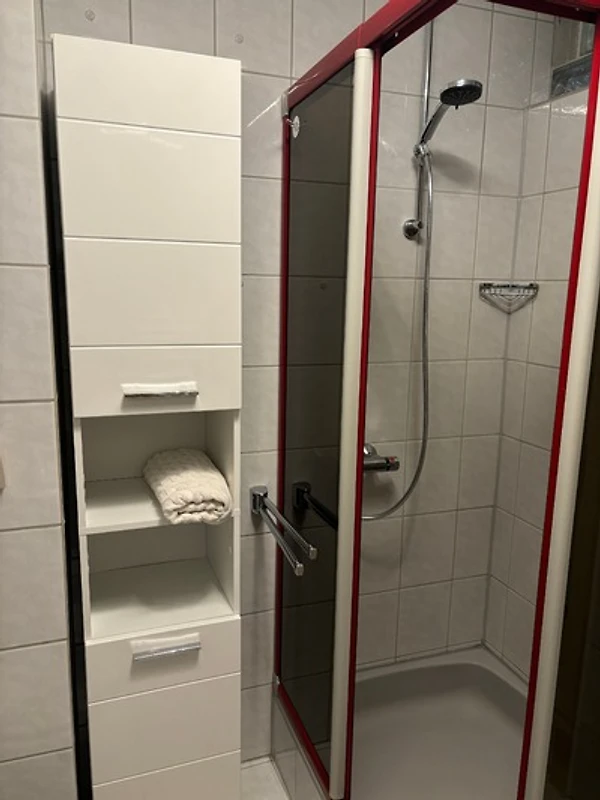 Sie befindet sich in unserem Haus im 1. Stock und hat einen eigenen