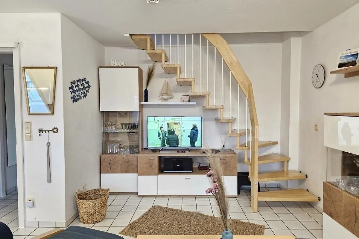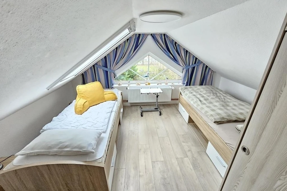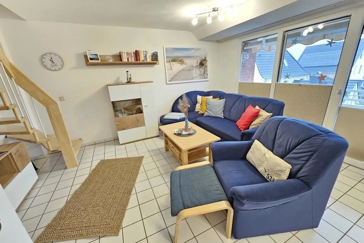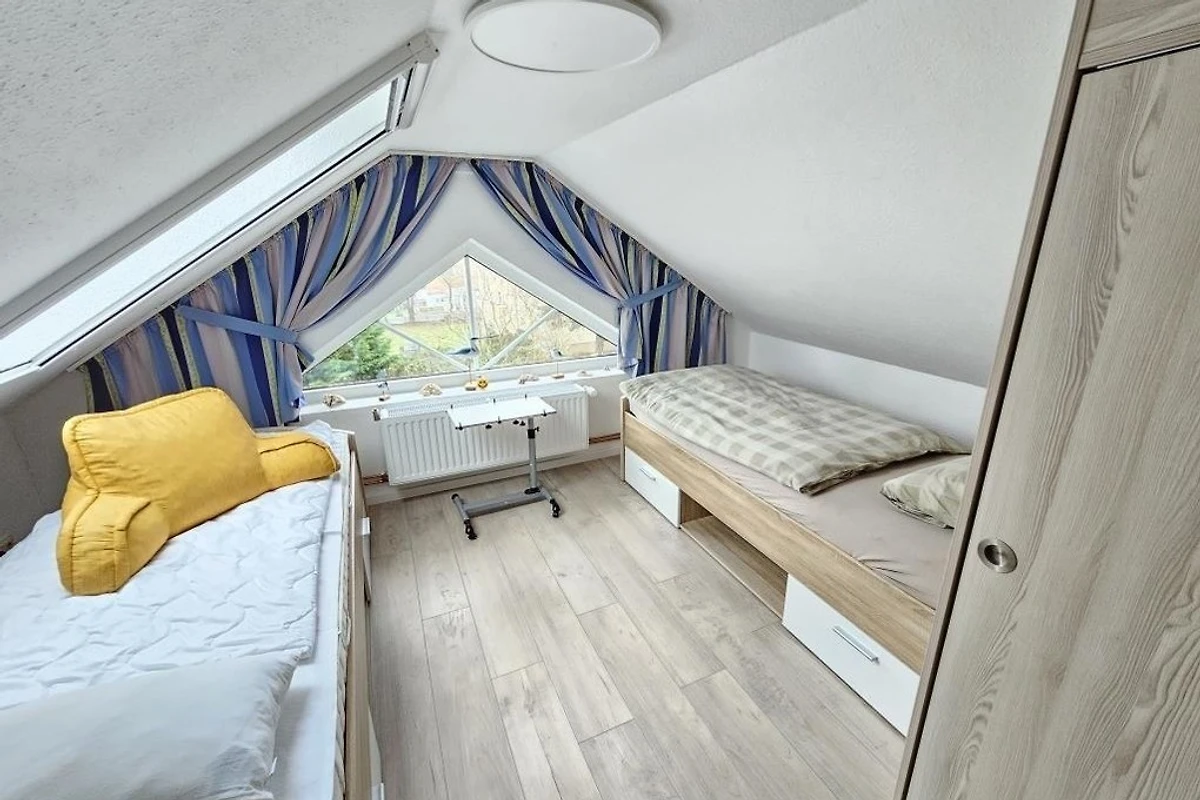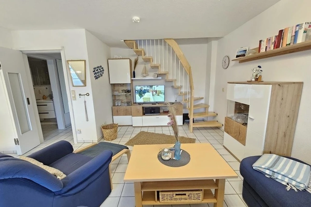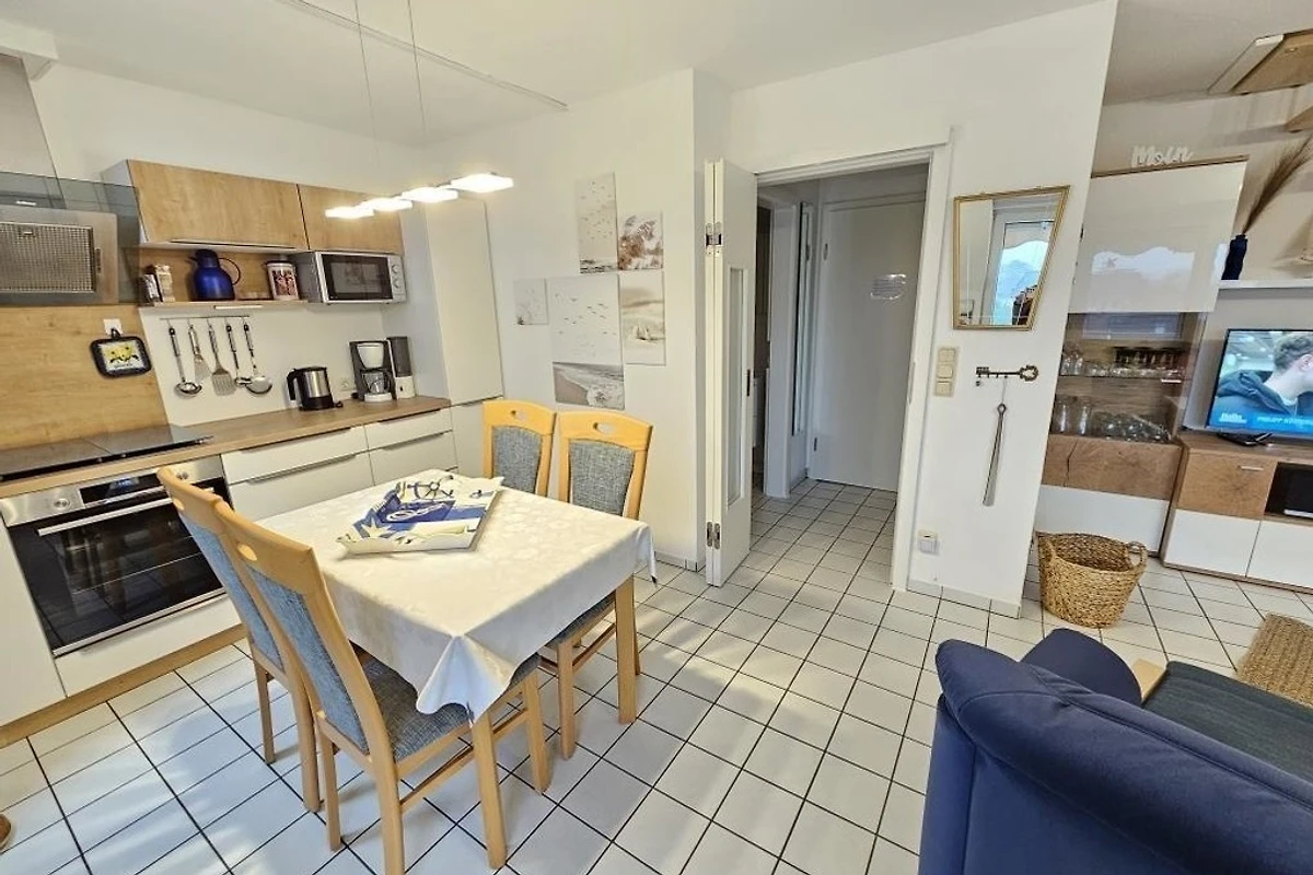 Es stehen Ihnen 2 Schlafräume im Dachgeschoss zur Verfügung (1 Doppelbett und 2 Einzelbetten). 1 Wohnraum mit gemütlichem Sofa und Essplatz und TV. Die Küchenzeile ist mit einem Kühlschrank, einem Backofen, einem Ceranfeld und einem Geschirrspüler ausgestattet. 1 Badezimmer mit Dusche / WC.