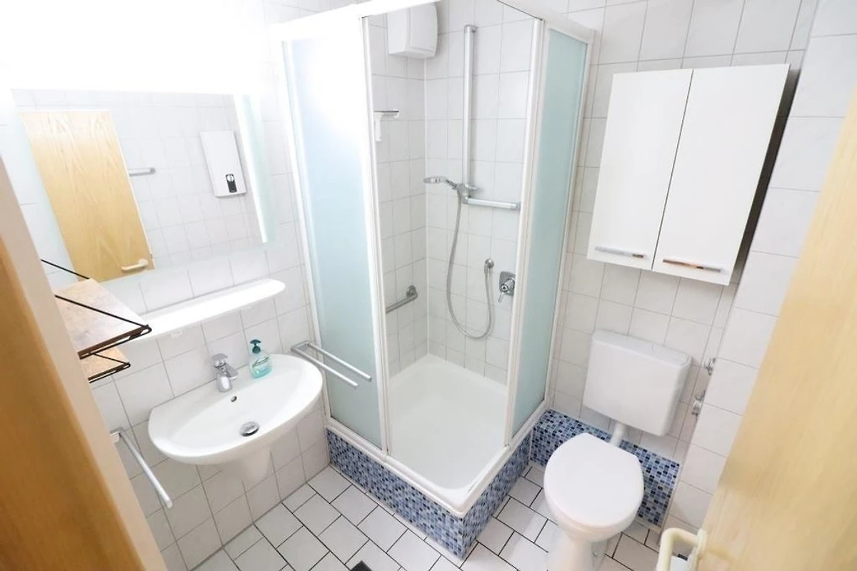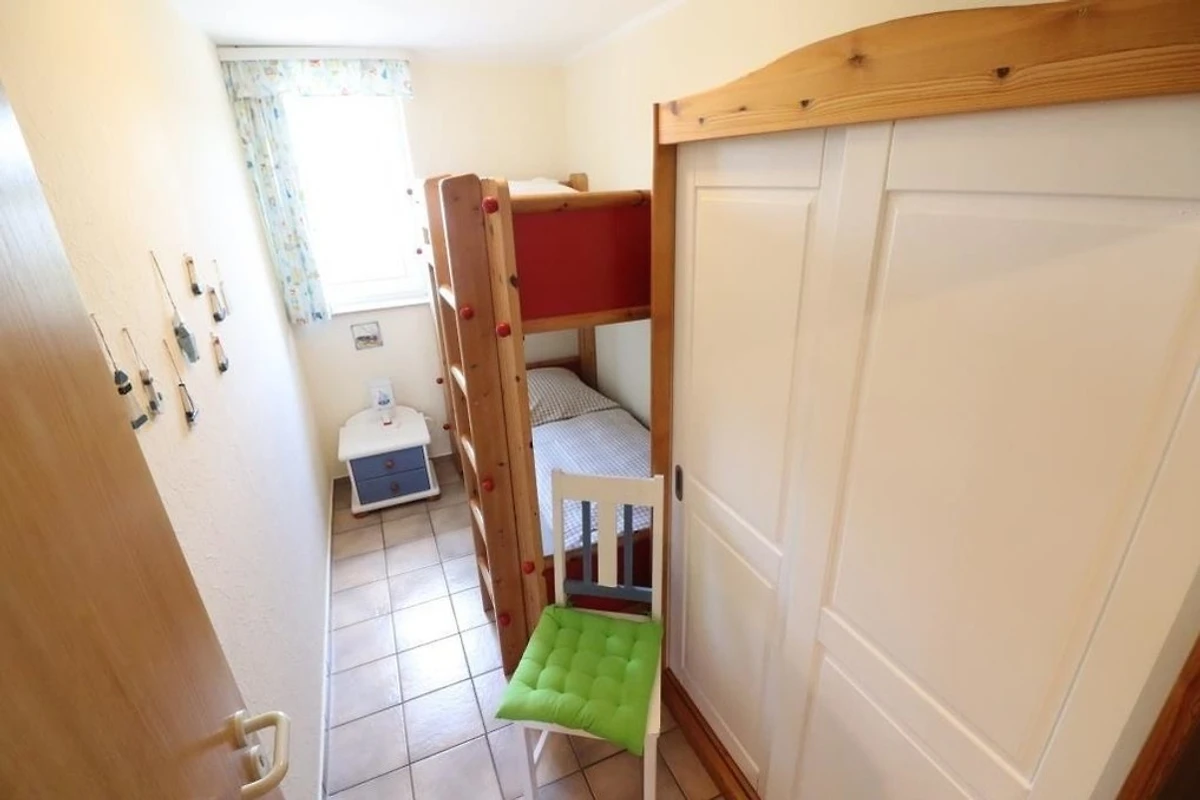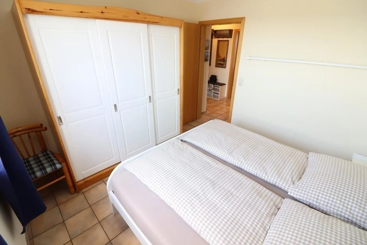 Die Wohnung ist ca. 53qm gross und verfügt über eine vollverglaste Loggia mit direkter Seesicht. Es gibt ein Schlafraum mit einem Doppelbett und einen Schlafraum mit einem Etagenbett. Die Küchenzeile ist im Wohnraum integriert und mit einer Mikrowelle und einem Geschirrspüler ausgestattet. Das Badezimmer ist mit Dusche / WC ausgestattet.