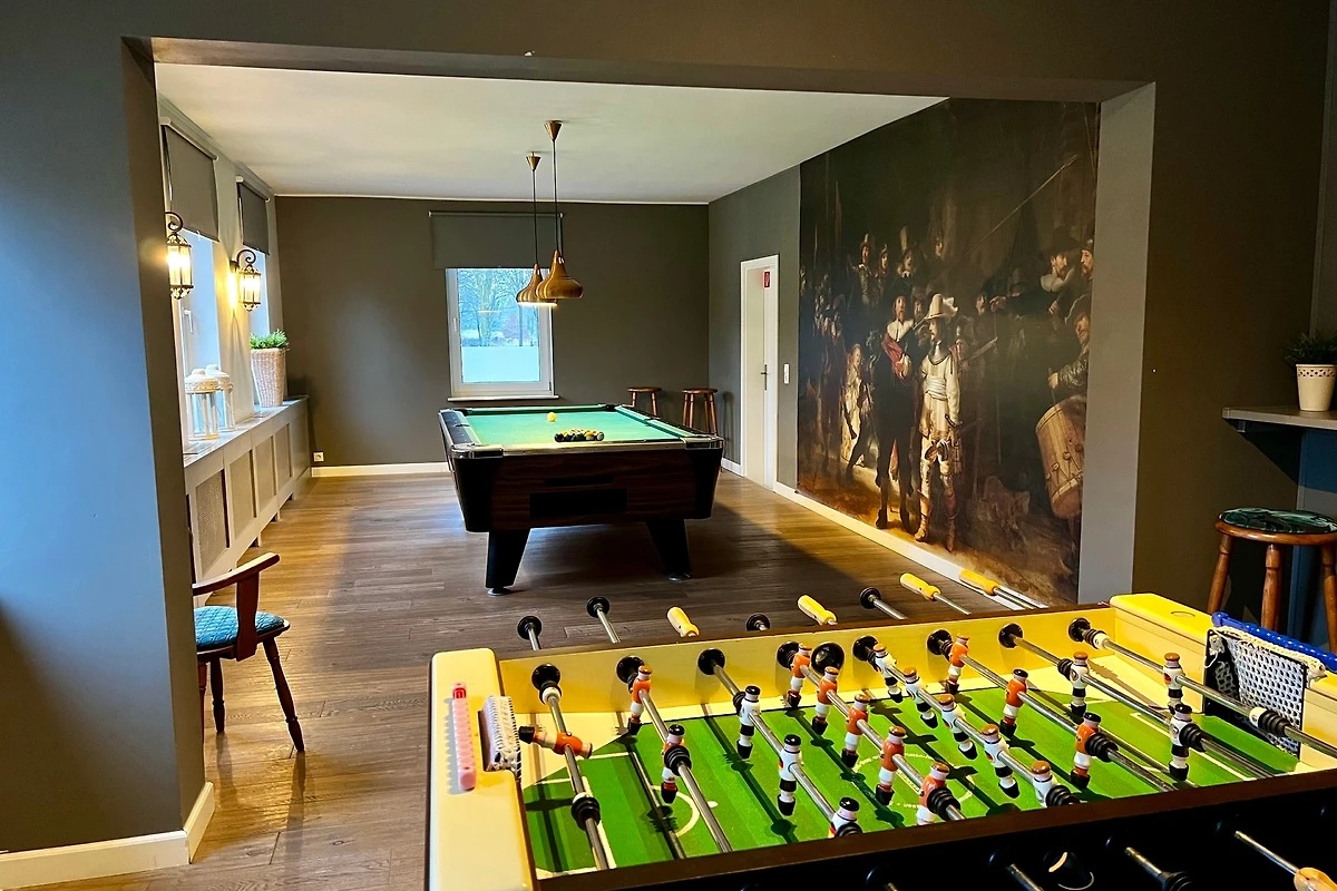 Das grosse Ferienhaus ist sehr komplett ausgestattet für Gruppen bis zu 18 Personen. Sie haben 10 Schlafzimmer und 9 Bäder, wovon 1 behindertengerecht zur Verfügung. Im Haus finden Sie Poolbillard, Kicker, Kinderspielspielzimmer und ein Kino mit 14 echte Kinostühle! Natürlich haben Sie auch Wlan.