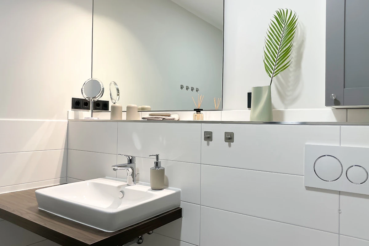 Grosser UHD Smart-TV im Wohnbereich, eigener Fernseher in jedem Schlafraum, Musikanlage und ultraschnelles WLAN gehören genauso zum Ausstattungsumfang wie hochwertige Hotelbetten (Boxspring) und eine grosszügige Komfortküche.