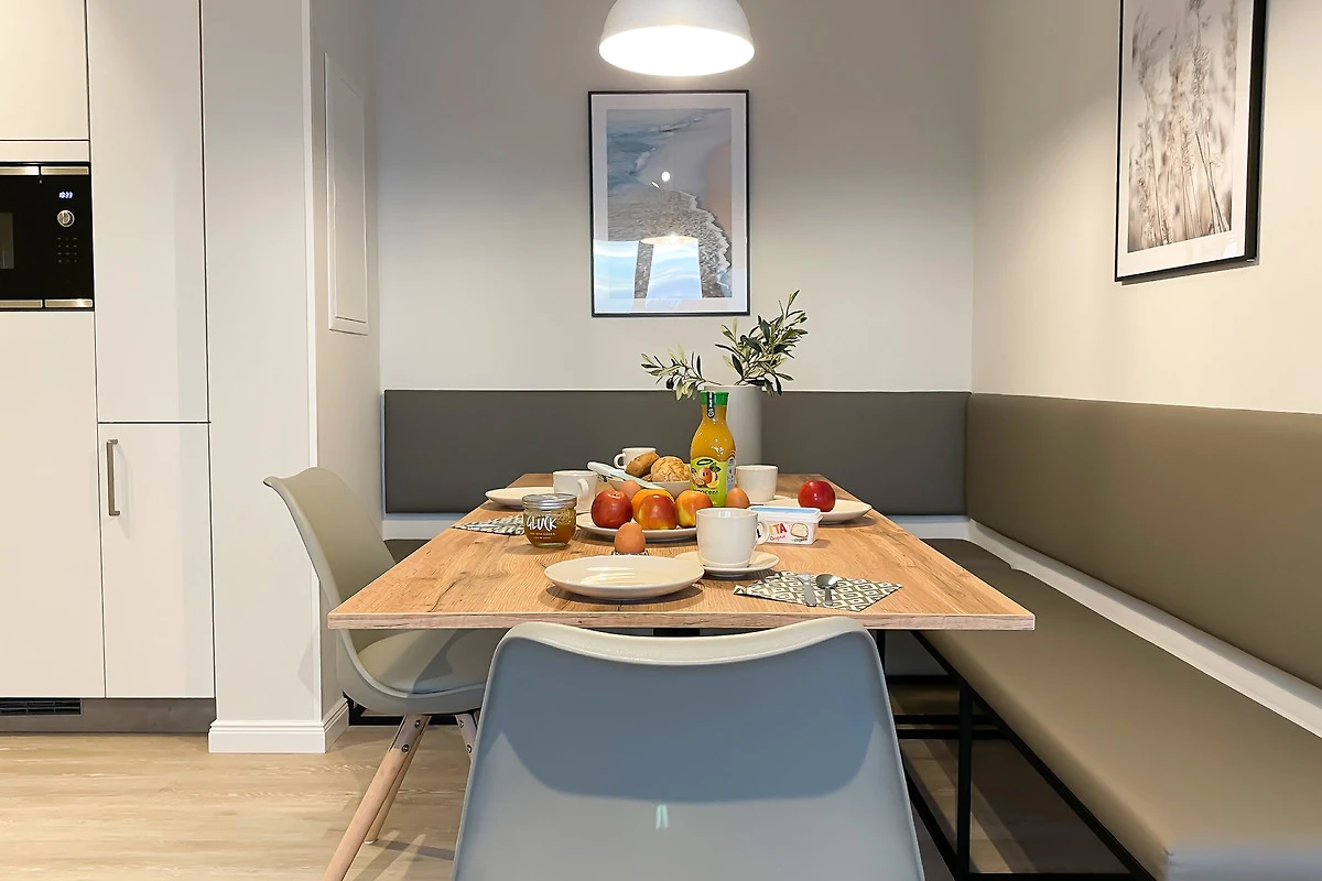 Das Apartment A2 ist ein Highlight dieser Ferienanlage. Vor allem die traumhafte 20 qm Terrasse ist ein besonderer Wohlfühl-Platz dieses Domizils. Darüber hinaus zeichnet sich die Wohnung durch eine geschmackvolle Einrichtung und beste Ausstattung aus. Modernste Technik und Interieur in edlem Design lassen Sie im Urlaub nichts vermissen, das Sie von zu Hause gewohnt sind.