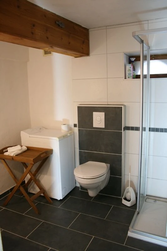 Ihnen steht die Wohnung von 40 m² Gesamtgrösse mit einer Wohnküche, ausgestattet mit Kühlschrank, Herd, Backofen und Geschirrspüler zur Verfügung. Das Schlafzimmer verfügt über ein 1,40m breites französisches Bett. Das Bett ist selbstverständlich frisch bezogen und Handtücher liegen bereit. Sie nutzen eine eigene Terrasse mit kleinem Garten und es steht ein kostenfreier Parkplatz (1 PKW) vor dem Haus zur Verfügung.