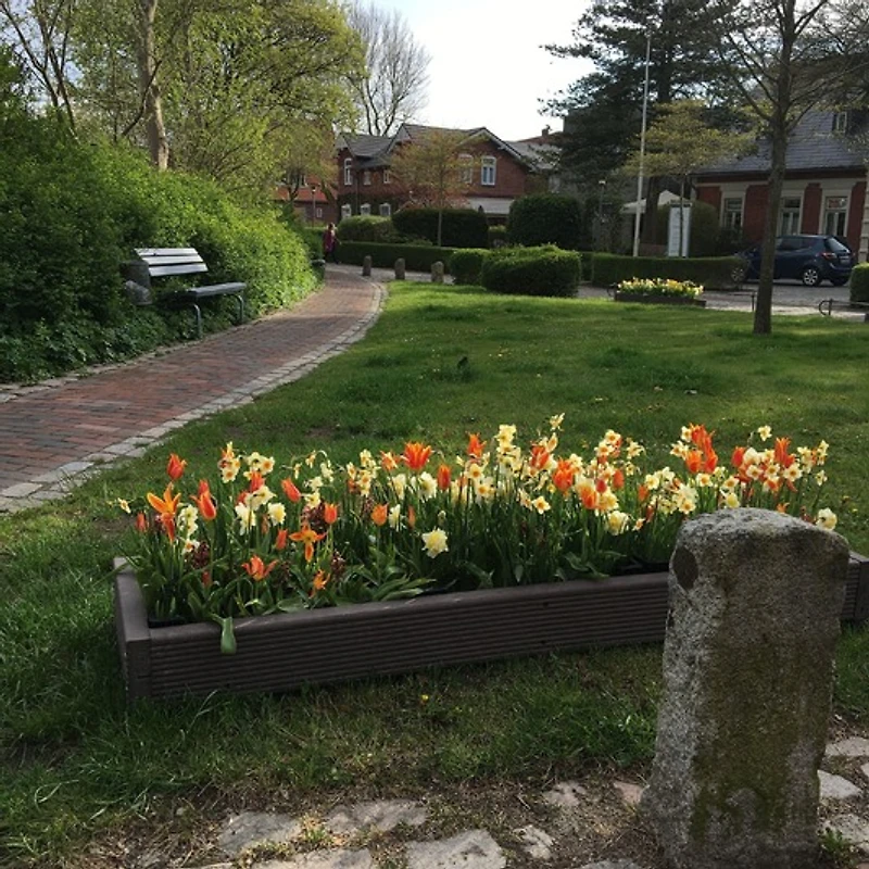 Hinter der den Garten begrenzenden Hecke befindet sich der Flugplatz der Deutschen Luftrettung DRF. Der Hubschrauber Christoph Europa 5 startet und landet auf der zum Niebüller Krankenhaus gehörenden Station; hierüber wird die Landbevölkerung, jedoch auch die Insel- und Halligwelt sowie ein Teil von Dänemark versorgtund es ist mit Flugverkehr zu rechnen. In den Sommermonaten profitieren neben den Einheimischen auch viele Touristen im Norden Schleswig-Holsteins von der Luftrettung.