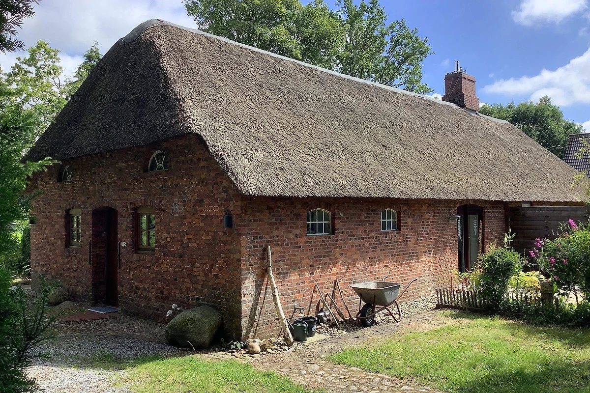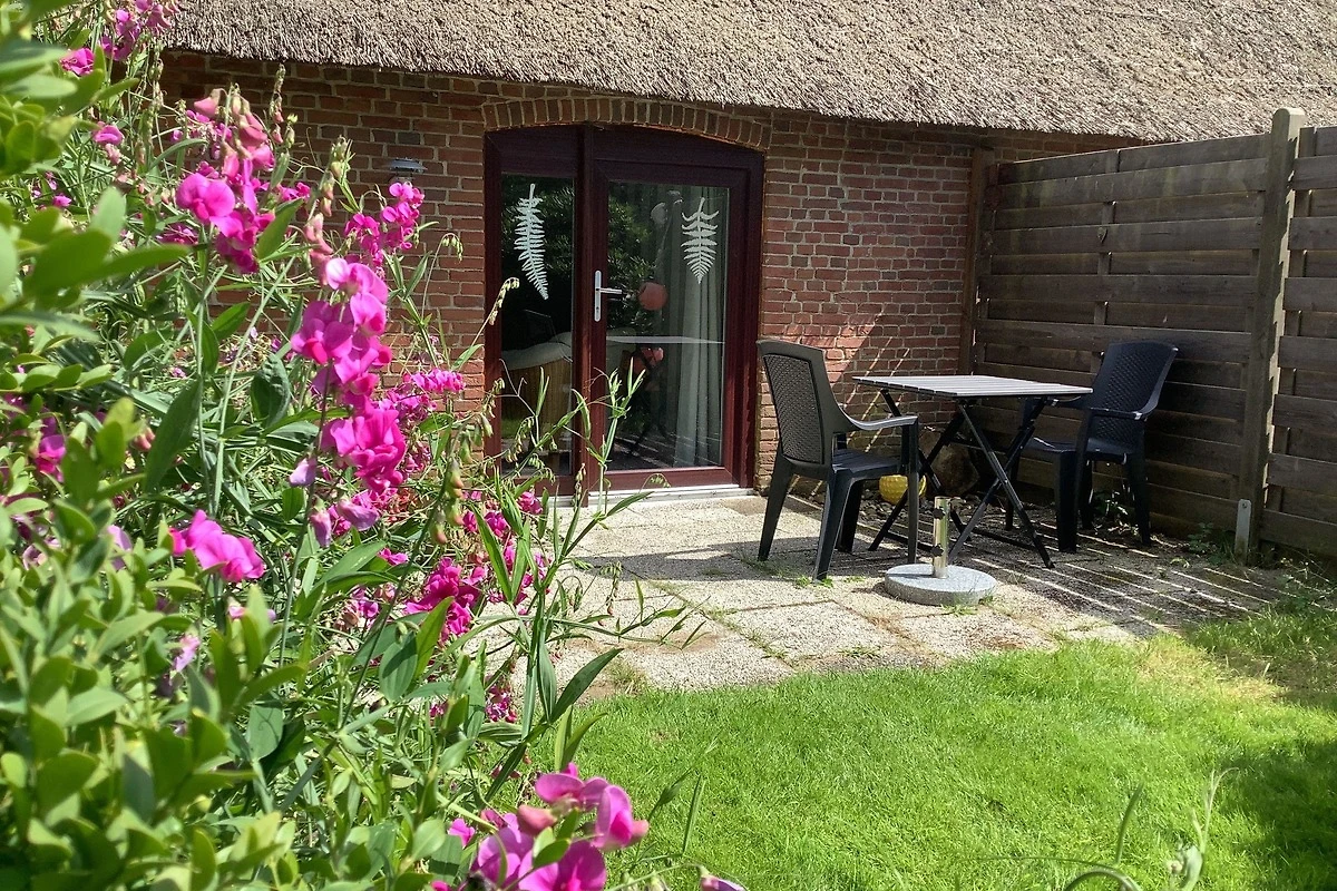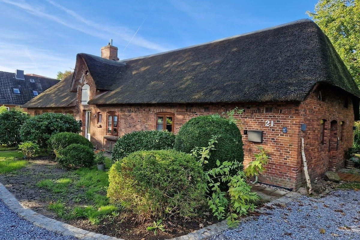 Bei der Einrichtung und Renovierung der Wohnung, welche das rechte Drittel des Hauses einnimmt, haben wir darauf geachtet, den ursprünglichen Charme des friesischen Bauernhauses zu erhalten. Die 2-teilige „Klönschnacktür“, die alten niedrigen Deckenbalken (z.T. nur 1,80m Durchgangshöhe) und die originalen Stallfenster haben wir erhalten. Rauchmelder sind vorhanden. Bad, Wohnküche und Schlafzimmer sind modernisiert. Sie sind mit viel Liebe zum Detail eingerichtet und werden laufend gepflegt.