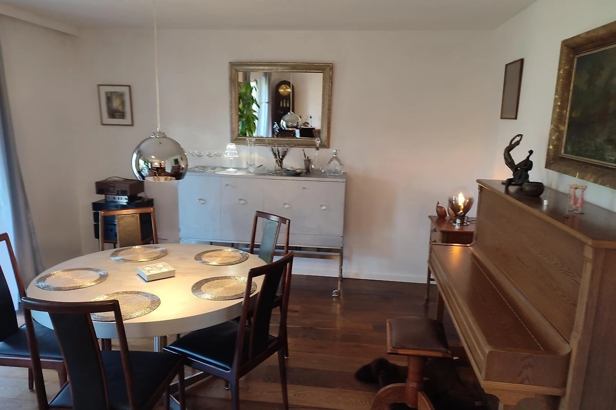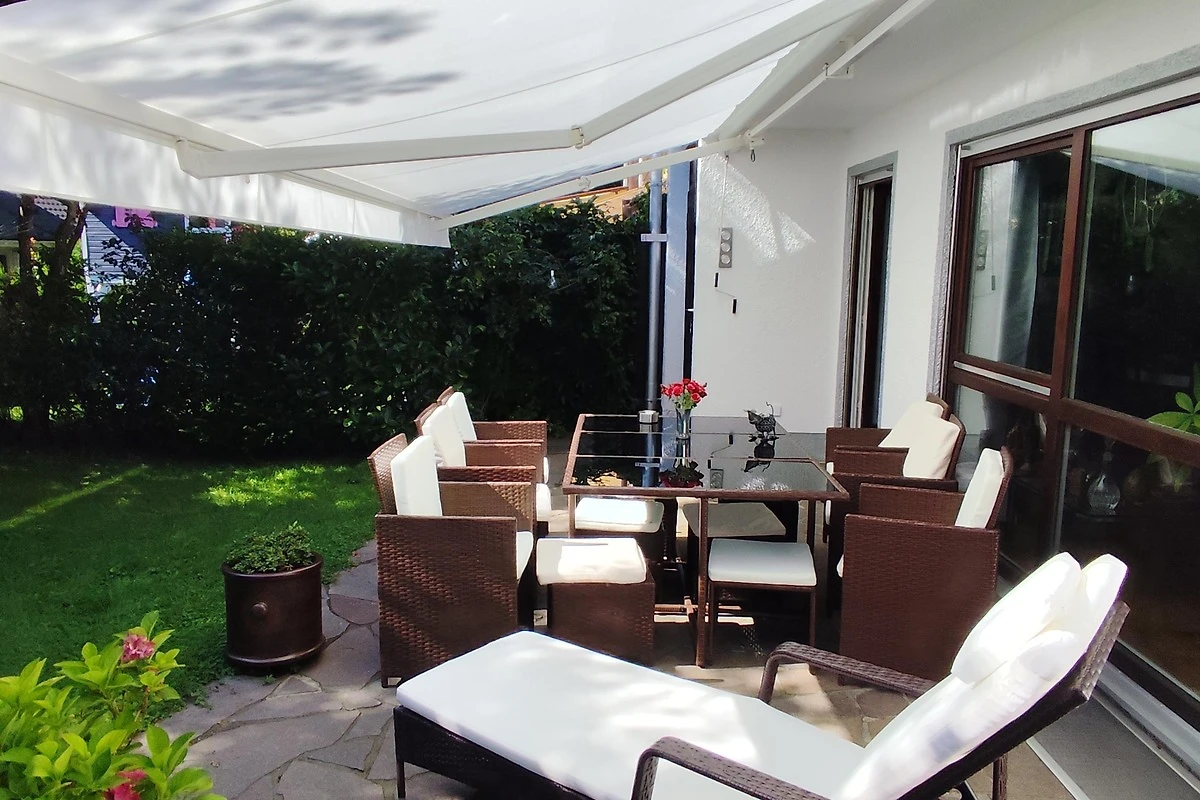 6 lichtdurchflutete Zimmer, 3 Badezimmer, 1 Gästetoilette, 4 Schlafzimmer, 140 qm nicht einsehbarer, grosser Privatgarten, durch Solarenergie klimatisiertes Dachgeschoss mit sehr leistungsstarker (4 kW), neuer Klimaanlage, so dass ein wunderbares "Wohlfühlklima" im gesamten Haus entsteht, 2 Glasduschen, 1 Badewanne, 4 Schreibtische bzw. Arbeitsplätze, 6 Schlafplätze und ein aufblasbares Notbett für Gäste, Massagesessel (sehr sanft!), Abstellkammer im Garten, edle Gartenmöbel aus Polyrattan mit weissen Polstern, 3 internetfähige Flachbildfernseher (2 davon sehr gross), sehr gute Stereoanlage, 3 Föne, neue Handtücher, Bügelbrett und Bügeleisen, neue Trockner, neue Waschmaschine, Geschirrspülmaschine, hervorragend klingendes im April 2025 neu gestimmtes Klavier inklusive Notenbücher, im Dach teilweise elektrische, teilweise mechanische Aussenjalousien, grosse Einzelgarage mit Elektrotor, Tischtennisplatte und 4-5 Fahrräder, Fussball-Kicker Spiel, Gesellschaftsspiele, klimatisiertes Dachgeschoss