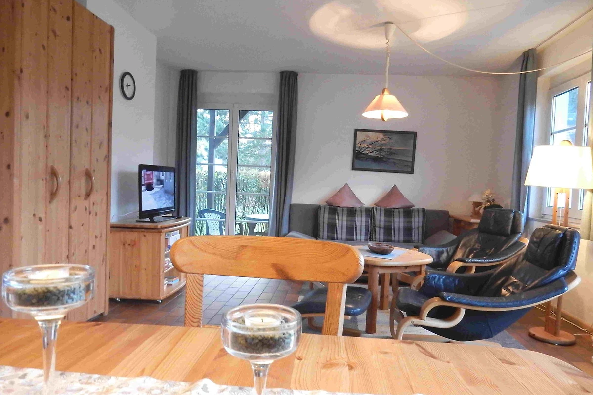 2 Zimmer-Ferienwohnung ca. 54 qm im EG für 1-4 Personen im Haus E in der Residenz Kormoran. Liebevoll eingerichtet. Wohnzimmer mit Schlafcouch, SAT-TV/Radio, WLAN, Esstisch, moderne Küchenzeile mit Backofen und Spülmaschine, Schlafzimmer mit Doppelbett, modernes Duschbad/WC, Südwest-Terrasse. Abschliessbarer Fahrradraum, Parkplatz.