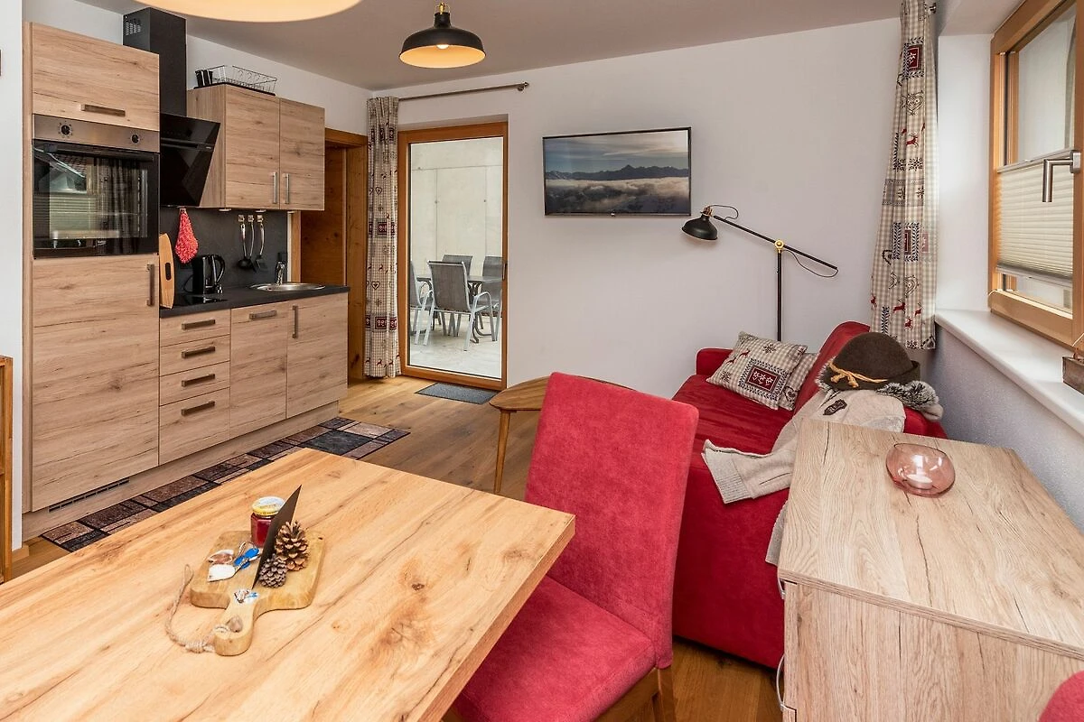 Die modernen Appartements wurden komfortabel und im alpinen Design eingerichtet. Besonderen Wert legten wir dabei auf die Verwendung von natürlichen Materialien (keine Teppichböden), damit sich auch Allergiker bei uns richtig wohl fühlen können. Holzböden, Fussbodenheizung, helle Räume mit viel Glas und sanfte Stoffe laden euch auch bei Schlechtwetter zum Verweilen ein.