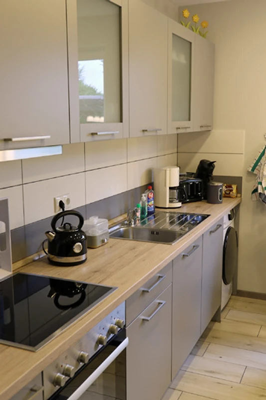 Die Wohnung ist modern eingerichtet und sehr komfortabel. Die Küche hat alles, was man braucht, wie z. B. Gewürze, Gefriertüten usw. Bäcker, Apotheke und Lebensmittelgeschäfte sind reichlich im Ort vorhanden.