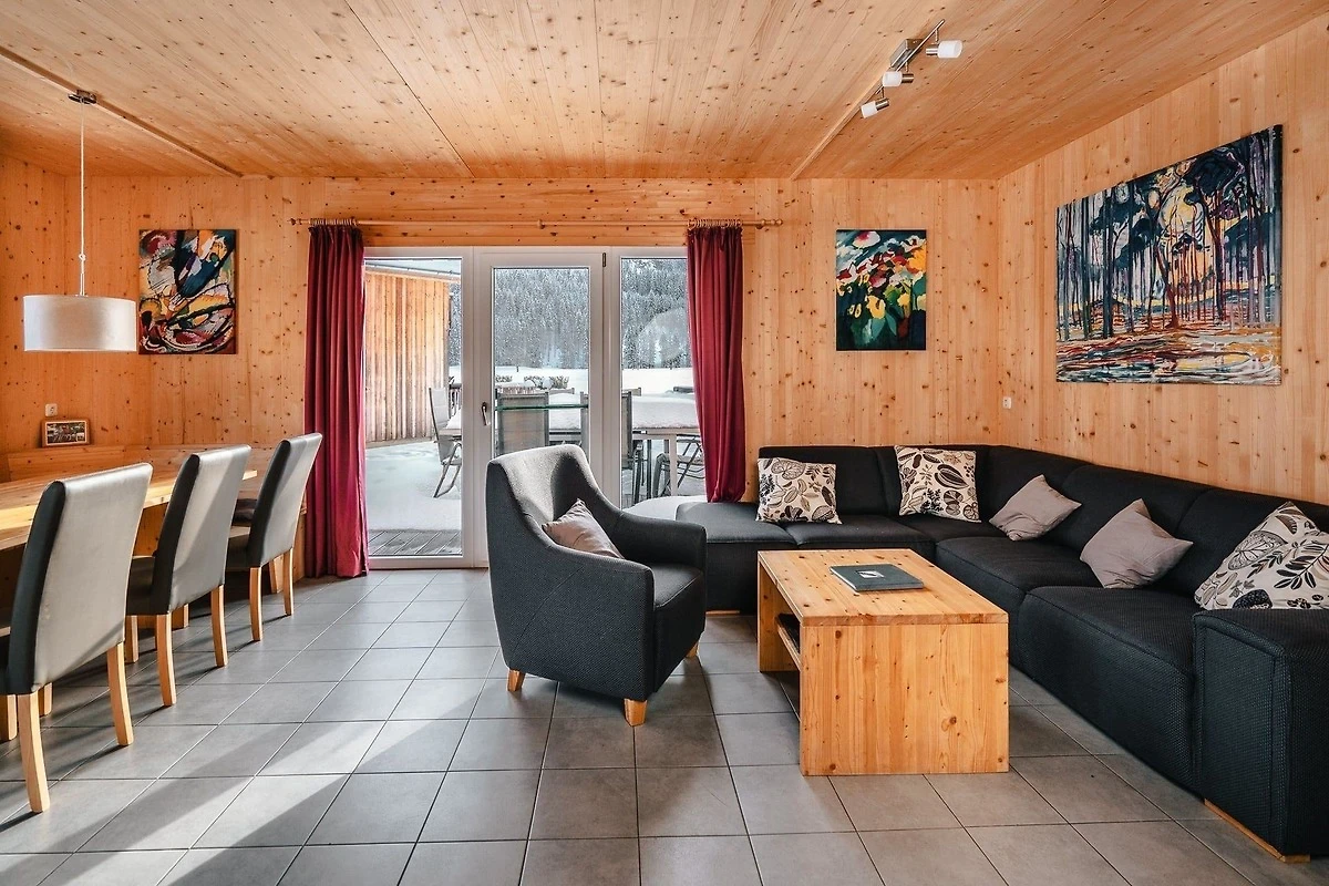 Das Chalet, 2017 erbaut, verfügt über alles, was Urlaubsgäste als Selbstversorger benötigen. Im Erdgeschoss befindet sich im Eingangsbereich ein Schischuhwärmer, eine Waschmaschine, Haushaltsgeräte, eine Ablage sowie ein Bad mit Dusche und WC. Das geräumige Wohnzimmer bietet eine gemütliche Couchecke mit TV und einen Esstisch für 8 Personen sowie einen Multifunktionstisch: Billard, Tischfussball, Black Gamon. Daneben bietet die Küche alles, was man benötigt: Vom Herd, Kühlschrank mit Gefrierfach, Spülmaschine, Toaster, Wasserkocher, Kaffeemaschine (Filter und Kapsel: Tschibo), Backrohr, Mikrowelle sowie Geschirr für mindestens acht Personen.