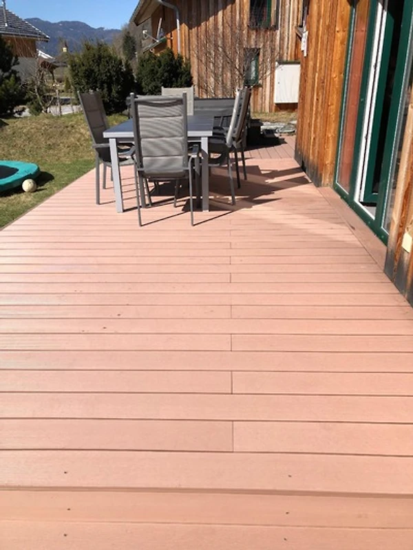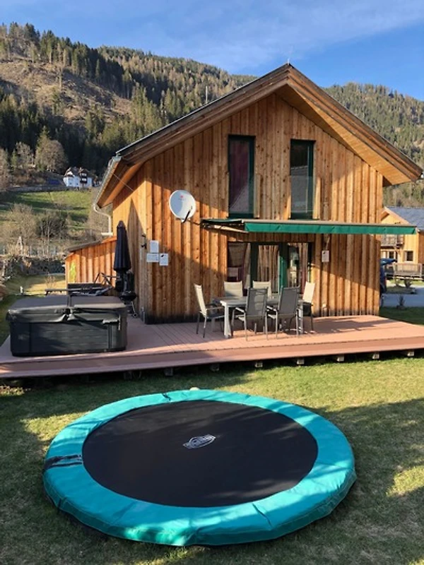 Ein Bodentrampolin im Garten macht nicht nur Kindern und Jugendlichen Spass. zwei Schaukeln, ein Spielturm mit Rutsche erfreut die kleineren Kinder. Die Terrasse mit Tisch, Sesseln und Sonnenliegen ladet zum gemütlichen Abendessen bzw. Sonnenbaden oder Lesen unter Tags ein. Autos (3-4) können direkt vor dem Haus geparkt werden. Ein Fahrradständer bietet Platz für 6 Bikes. Zur Entspannung nach einem anstrengenden Sporttag steht ein Whirlpool für 5 Personen auf der Terrasse mit bis zu 38 Grad Wassertemperatur bereit. Ein Holzofengriller macht Lust auf nette Grillabende unter Freunden.