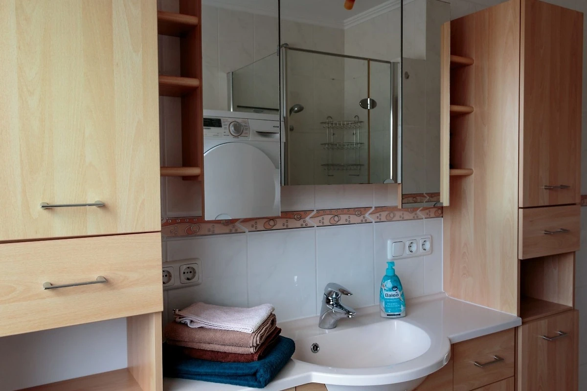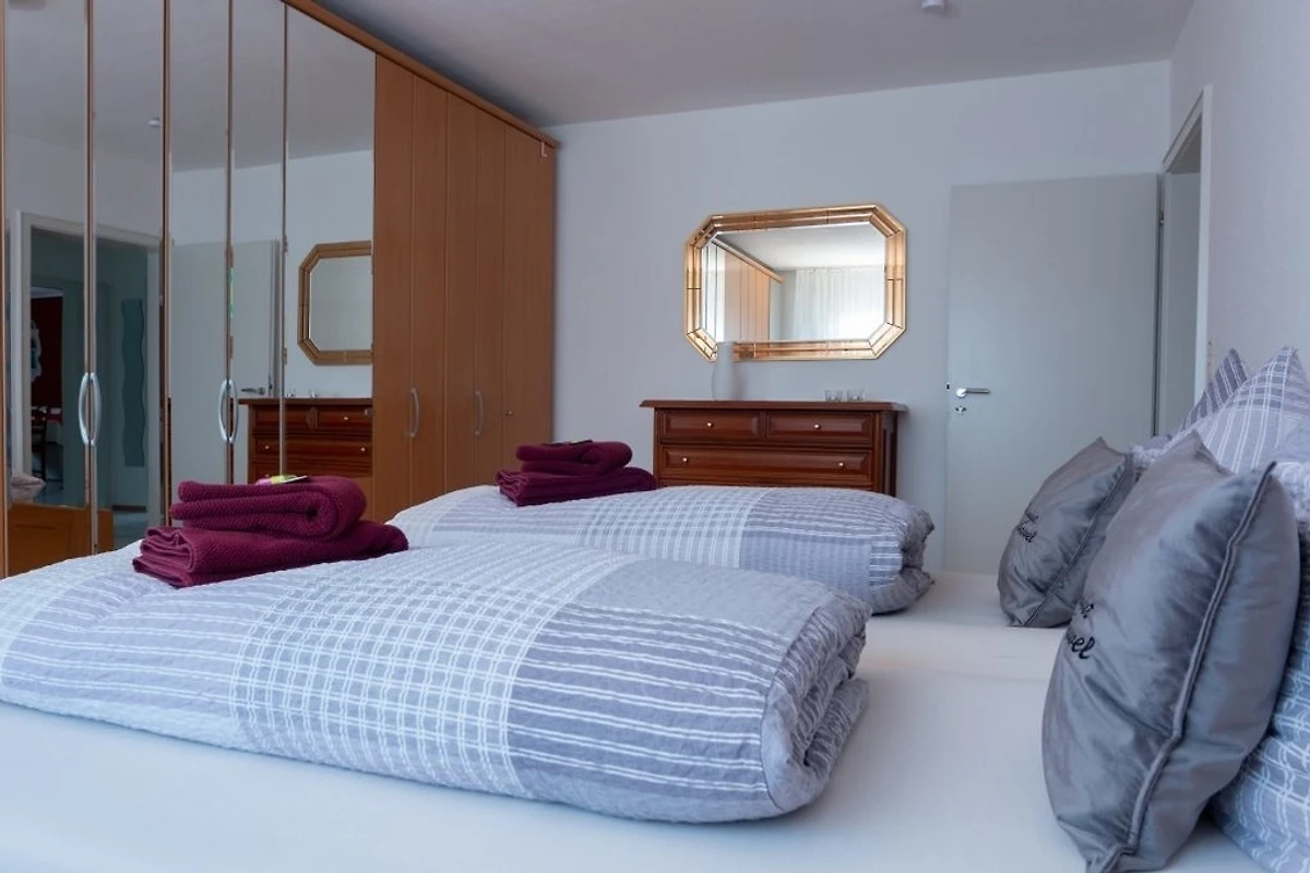 Die 3-ZKB gemütliche Ferienwohnung befinden sich im 1. OG und verfügt über 115 qm, welche Platz für 2-4 Personen bietet. Die 2 Schlafzimmer sind mit Boxspringbetten und geräumigen Kleiderschränken ausgestattet. Im Wohnzimmer befindet sich eine schöne gemütliche Couch und einen grossen TV. Die Ferienwohnung hat einen Sat-TV Anschluss sowie kostenfreies WLAN. Im Badezimmer mit Dusche/WC sind eine Waschmaschine sowie ein Trockner vorhanden. Föhn und Handtücher liegen für Sie bereit. Die separate, voll ausgestattete geräumige Küche verfügt zusätzlich über einen Kühlschrank mit Gefrierschrank, Geschirrspüler, Mikrowelle, Wasserkocher, Senseo Kaffeemaschine und Toaster, somit bleiben keine Wünsche offen, um auch einmal selbst etwas Leckeres zu zaubern. Für unseren kleinen Gäste stellen wir gerne auf Anfrage ein Baby-/Kinderbett mit Wickelauflage, einen Hochstuhl und einen Flaschenwärmer zur Verfügung.