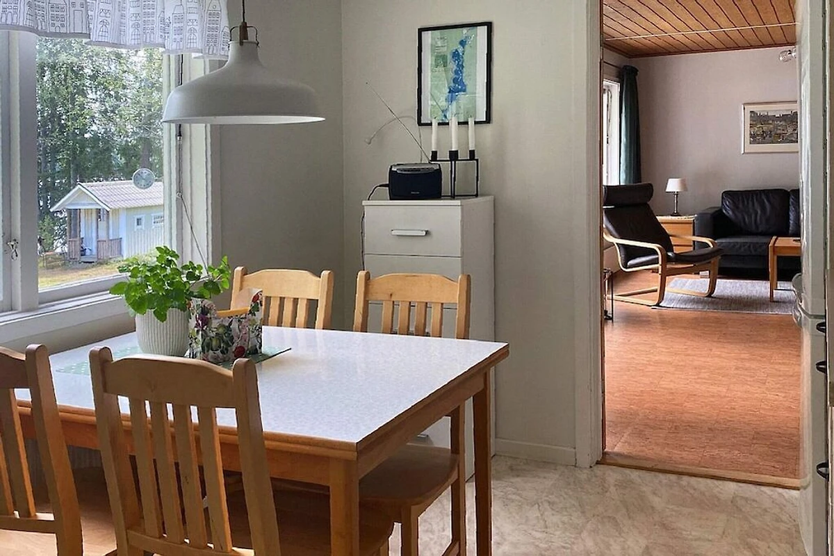 Mitten im Herzen von Småland, umgeben von ruhiger Waldlandschaft, gibt es für Naturliebhaber unterwegs an den Seen und durch die Wälder, viel zu entdecken und fantastische Möglichkeiten zum Entspannen. Mit diesem Ferienhaus haben Sie dafür wirklich den perfekten Ausgangspunkt gefunden. Hier wohnen Sie in einem gemütlichen, geräumigen Ferienhaus, nur einen Steinwurf vom eigenen Seeufer entfernt. Erkunden Sie den schönen See vom Boot oder Kanu aus, deren Nutzung im Mietpreis enthalten ist. Genießen Sie den Seeblick auf der Terrasse des Hauses oder von drinnen, vom gemütlichen Wohnzimmer mit Kamin aus, das ebenfalls schöne Aussicht bietet. Im Ferienhaus steht Ihnen WIFI zur Verfügung. Das Ferienhaus wird an max. vier Personen vermietet, denen drei Schlafzimmer zur Auswahl stehen. Im linken Teil des Hauses findet man das geräumige Badezimmer und zwei Schlafzimmer; eines mit Doppelbett und Seeblick, das zweite mit Etagenbett. Im Anschluss daran liegt die Küche mit Essecke, ebenfalls mit schönem Seeblick. Nebenann erwartet Sie das geräumige Wohnzimmer mit Ess- und Sitzecke sowie herrlicher Aussicht und einem Kamin für kühlere Abende. Vom Wohnzimmer aus hat man Zutritt zum dritten Schlafzimmer mit zwei Einzelbetten sowie zur Terrasse des Hauses. Nur etwa 30 m entfernt finden Sie das hauseigene Seeufer, an dem sowohl Boot als auch Kanu bereitliegen. Genießen Sie die schönen Ausflüge auf dem Wasser, nicht nur im Sommer, sondern auch im Frühling oder Herbst. Gut zu wissen Die Endreinigung kann vor Ort direkt beim Hauseigentümer erworben werden. Eine Vorbestellung der Reinigung ist nicht möglich. Es gibt deutsche TV-Sender. Zahlreiche Ausflugsziele stehen in der Umgebung zur Auswahl, darunter nur 6 km das Isaberg Mountain Resort mit Radwegen, Rodelbahn, Wanderwegen und vielem mehr. Wenn Sie Rad fahren, gelangen Sie bequem über den Radweg vom Ferienhaus zum Isaberg. Im Winter, wenn es schneit, hat Isaberg auch eine Skipiste, aber unabhängig von der Jahreszeit gibt es hier viel zu erleben. Wandern Sie auch durch die reizvolle Landschaft ringsum das Haus, zudem liegt etwa 30 km entfernt das Naturschutzgebiet Store Mosse mit zahlreichen Wanderwegen und fantastischer Natur. Im Sommer können Reisende mit Kindern die Gelegenheit nutzen, das Westerndorf High Chaparral zu besuchen, ein Wild-West-Erlebnis für die ganze Familie. Dort gibt es z.B. Bisons, Eisenbahnwracks, Raddampfer, Goldwaschen, Cowboys, Shows und Theater zu erleben. Für Golfer liegt der Golfclub Isaberg nur 8 km entfernt. Der Golfclub verfügt über zwei 18-Loc -Golfplätze sowie einen 6-Loch Kurzlochplatz mit Pay & Play-Platz. Für ein kulinarischeres Erlebnis steht 6 km weiter das Restaurant Hestraviken bereit, wo man auf frische, saisonale Zutaten, die oft aus der Region stammen, Wert legt.