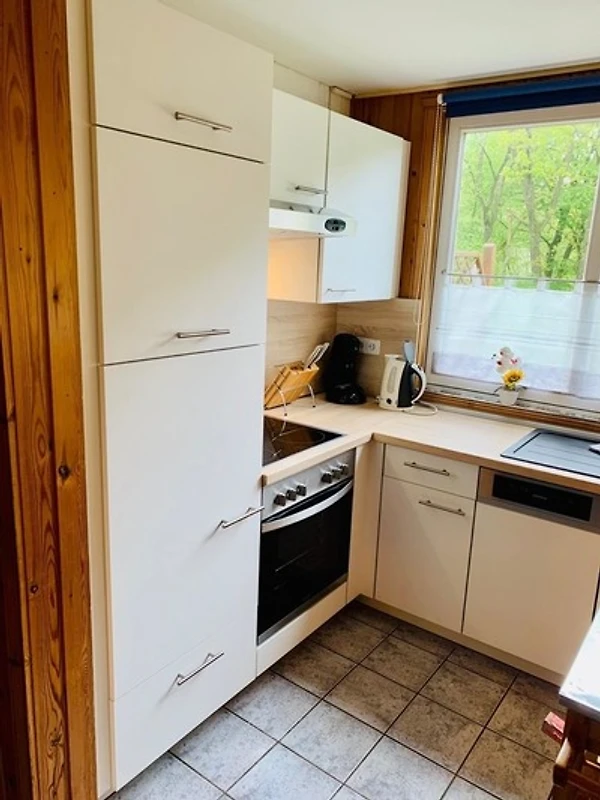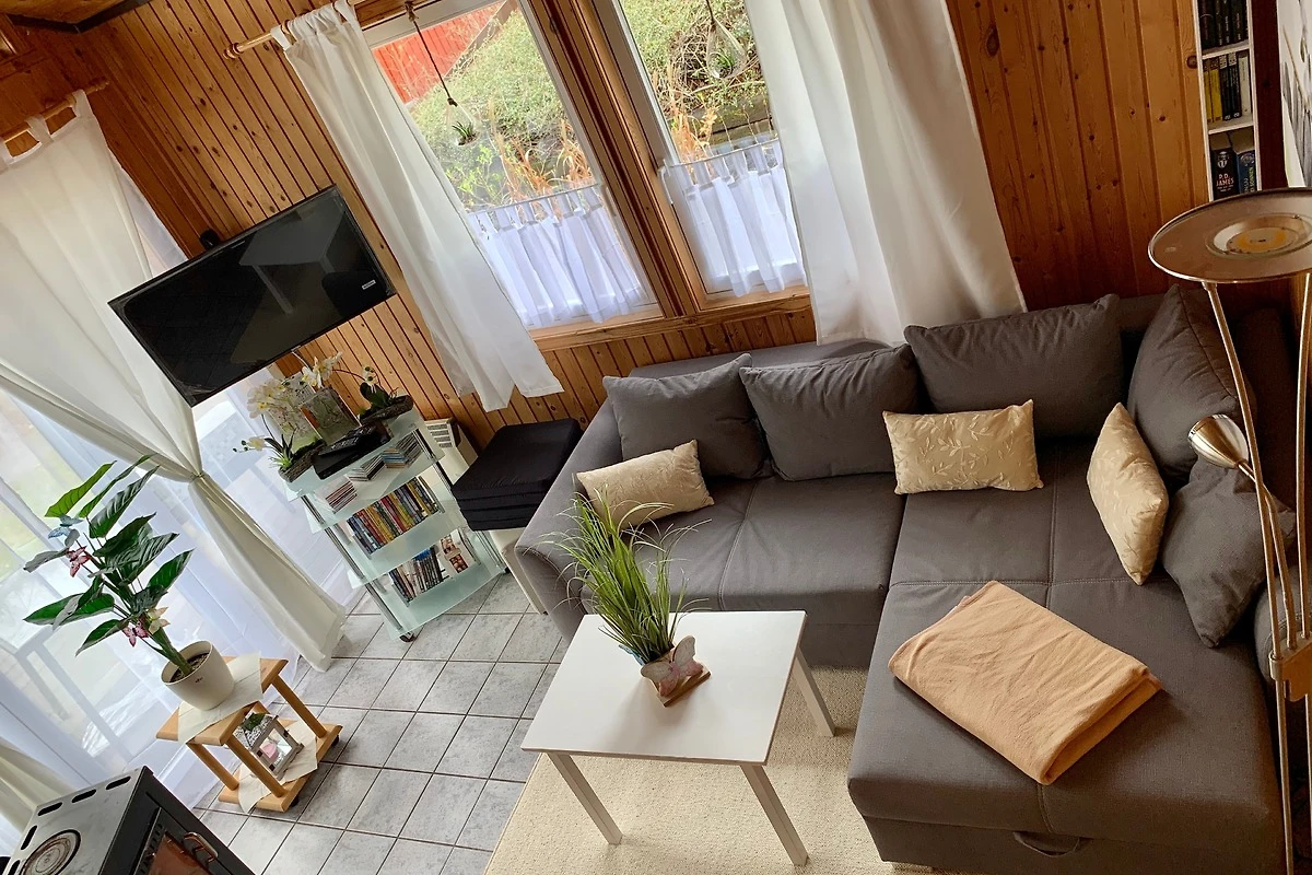Vom kostenlosen Parkplatz direkt am Haus gelangen Sie bequem in Ihr Ferienhaus. Das Haus erstreckt sich über zwei Ebenen und bietet Platz für bis zu 5 Personen.
