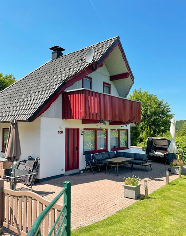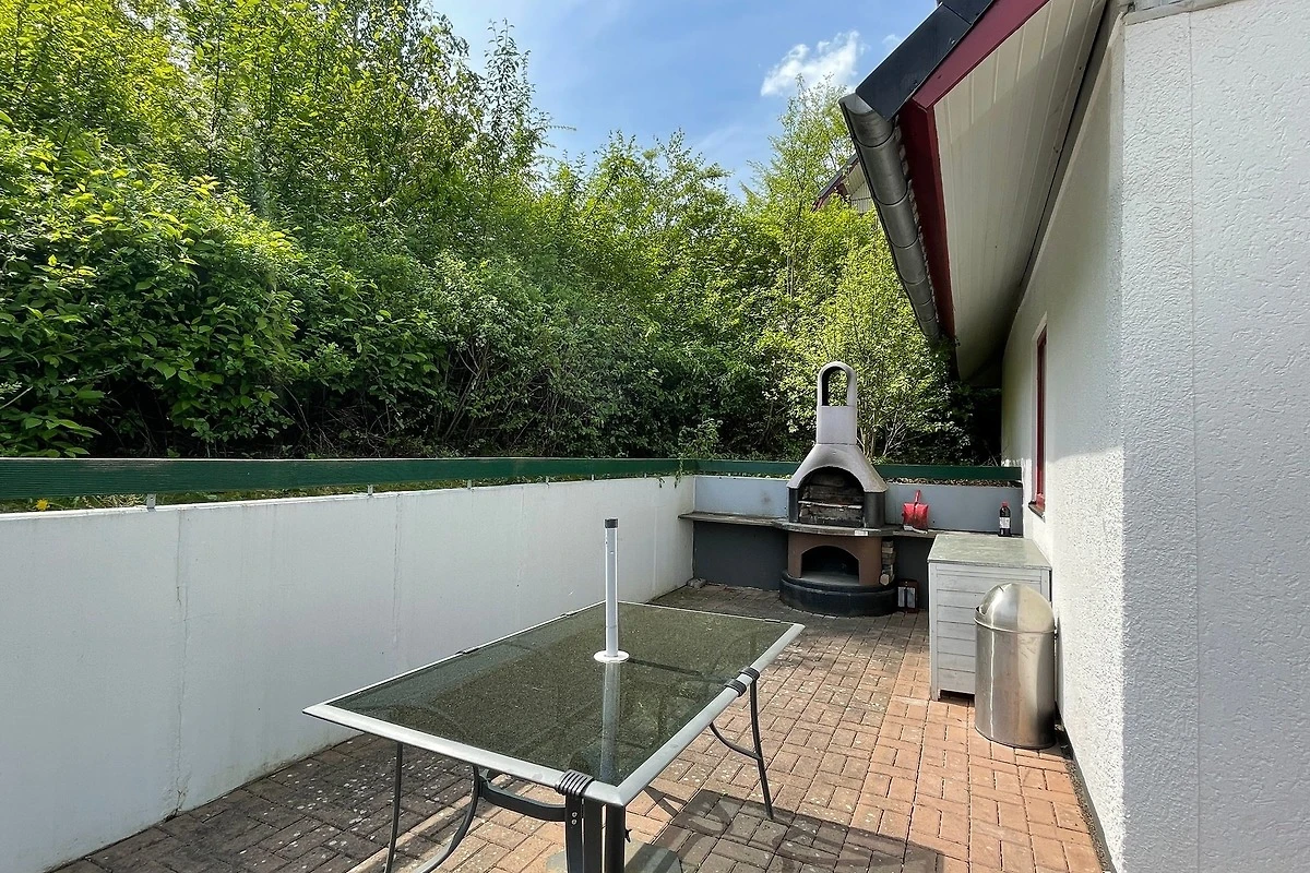 Weiterhin ist das Haus mit verschiedenen Accessoires bestückt, die eine stilvolle Gemütlichkeit vermitteln, sodass man sich bereits beim betreten des Hauses sofort wohl fühlt. Das Grundstück ist rundherum bepflanzt und daher im Sommer, wenn alles grün ist, fast blickdicht.
