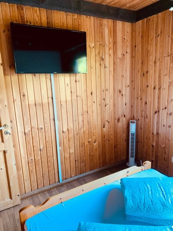 Das an den Wohnraum angrenzende Schlafzimmer ist mit genügend Stauraum und einem Multimedia Smart-TV ausgestattet.