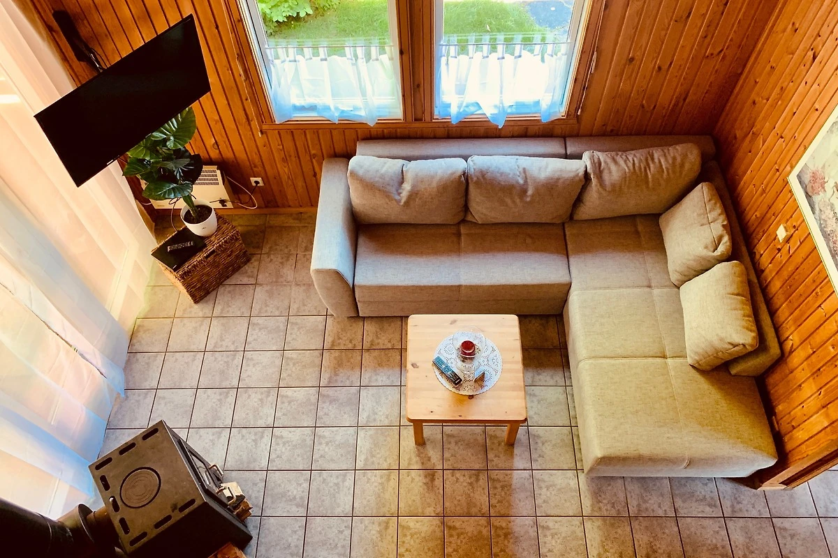 Eine Grundausstattung Brennholz, sowie Anzünder sind bereits im Ferienhaus vorhanden. Die Sitzlandschaft kann als zusätzliche Schlafgelegenheit genutzt werden.