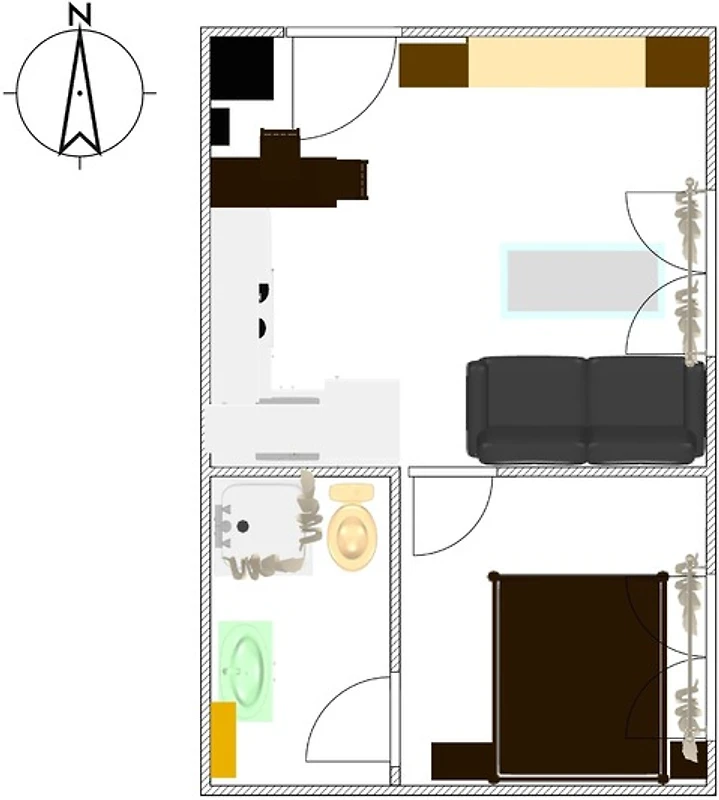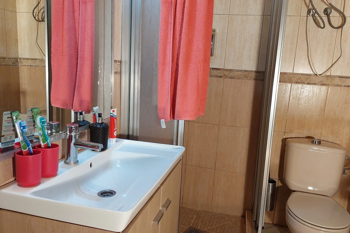 Die im modernen Stil eingerichtete Ferienwohnung liegt im ersten Stockwerk direkt zur Landstrasse auf nahezu Strassenniveau (Vierfachverglasung). Der Wohnbereich verfügt über eine grosse moderne und voll ausgestattete Küche (inkl. Mikrowelle), eine Esstheke sowie ein bequemes Sofa. Das Schlafzimmer ist mit einem 150 cm grossen französichen Bett ausgestattet. Das direkt anschliessende Badezimmer hat eine Dusche. Der Flachbildfernseher verfügt über Satellitenempfang mit ca. 450 internationalen Sendern- darunter alle frei empfangbaren deutschen Kanäle - sowie durch Umschalten auf der Fernbedienung über DVB-T-Empfang mit den gängigen spanischen Fernsehsendern. Zudem kann auf Anfrage kostenlos Netflix bereitgestellt werden. Unser Haus verfügt über Internetanschluss per Glasfaser und in allen Unterkünften sowie auf der Dachterrasse steht sehr gut funktionierendes W-LAN zur kostenlosen Verfügung. Der geringe Preis erklärt sich durch die Lage zur Strasse, durch die Lärmbelästigungen nicht ausgeschlossen werden können. Für lärmempfindliche Menschen ist dieses Apartment nicht geeignet.