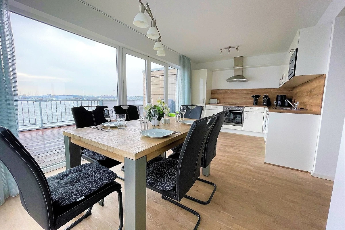 Lage DIREKT zwischen Hafen und Schlei, Wasserblick sowohl vom Wohnbereich als auch von den beiden Schlafzimmern, sonnige Süd-Terrasse, eigene Infrarot-SAUNA und Whirlpool!