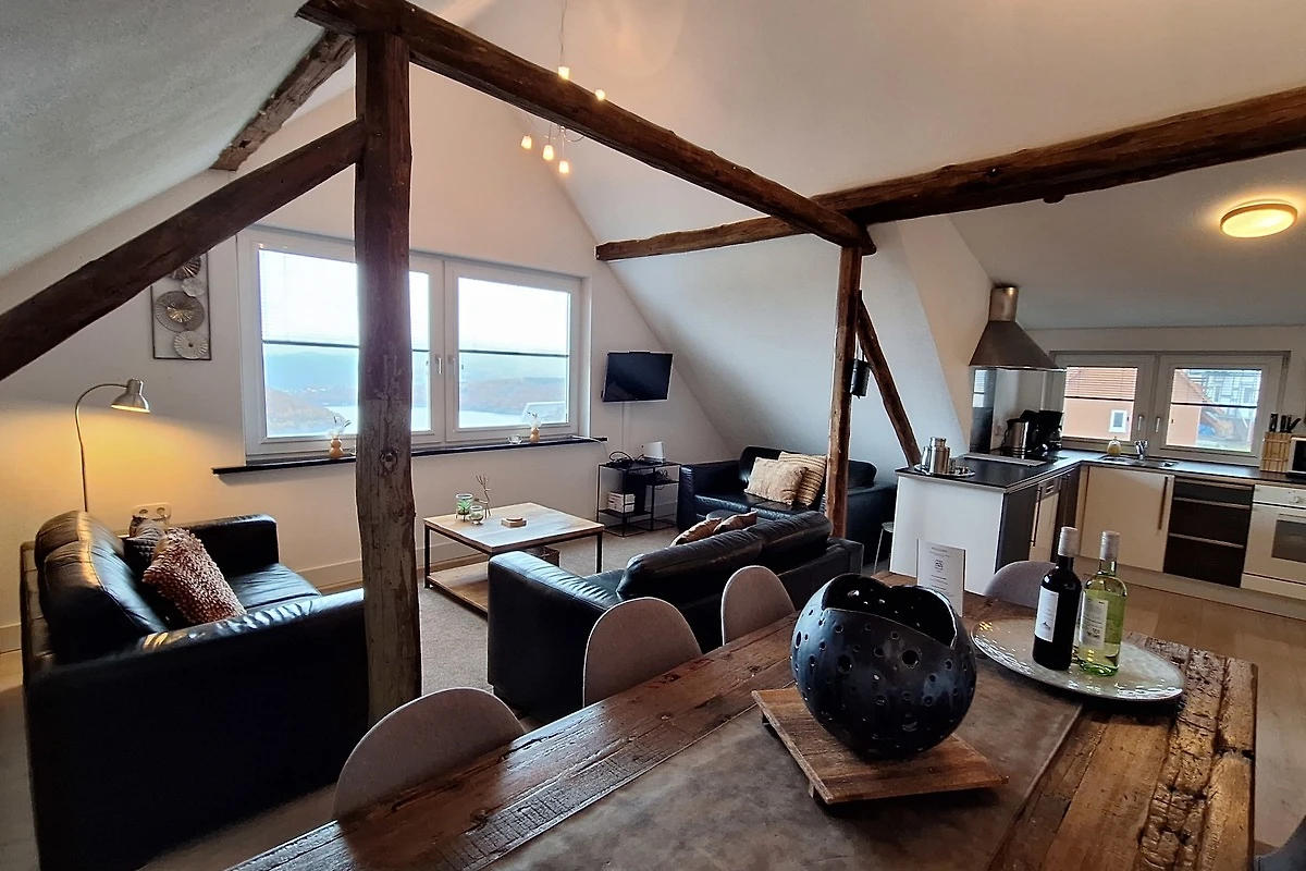 Das Schloss Waldeck ist 400 Meter zu Fuss entfernt, von hier aus können Sie mit der Seilbahn zum See hinunterfahren.