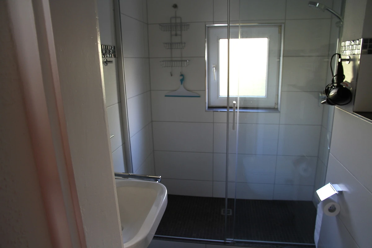 Im Bad, ausgestattet mit WC, Waschbecken und Dusche, stehen unseren Gästen auch ein Haartrockner, Handwaschseife und Kosmetiktücher zur Verfügung.